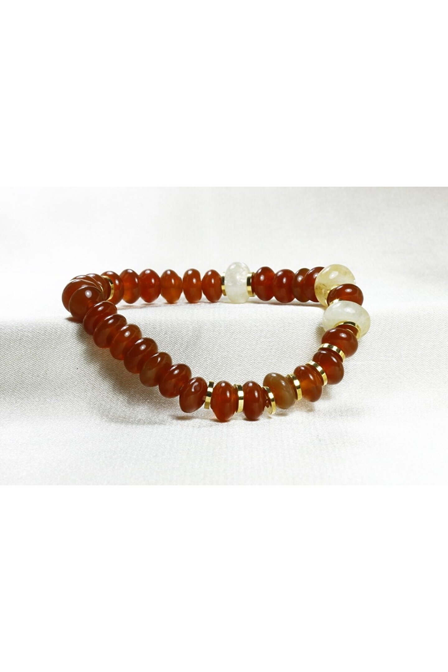 Kırmızı Akik ve Sitrin Doğal Taş Kadın Bileklik doğal taşların enerjisine inanan ve şıklığından ödün vermek istemeyen kadınlar için sınırlı sayıda özel olarak üretildi. Bu eşsiz bileklik tam size göre! Kendinizi ya da sevdiklerinizi mutlu etmek için mükemmel bir hediye seçeneği.