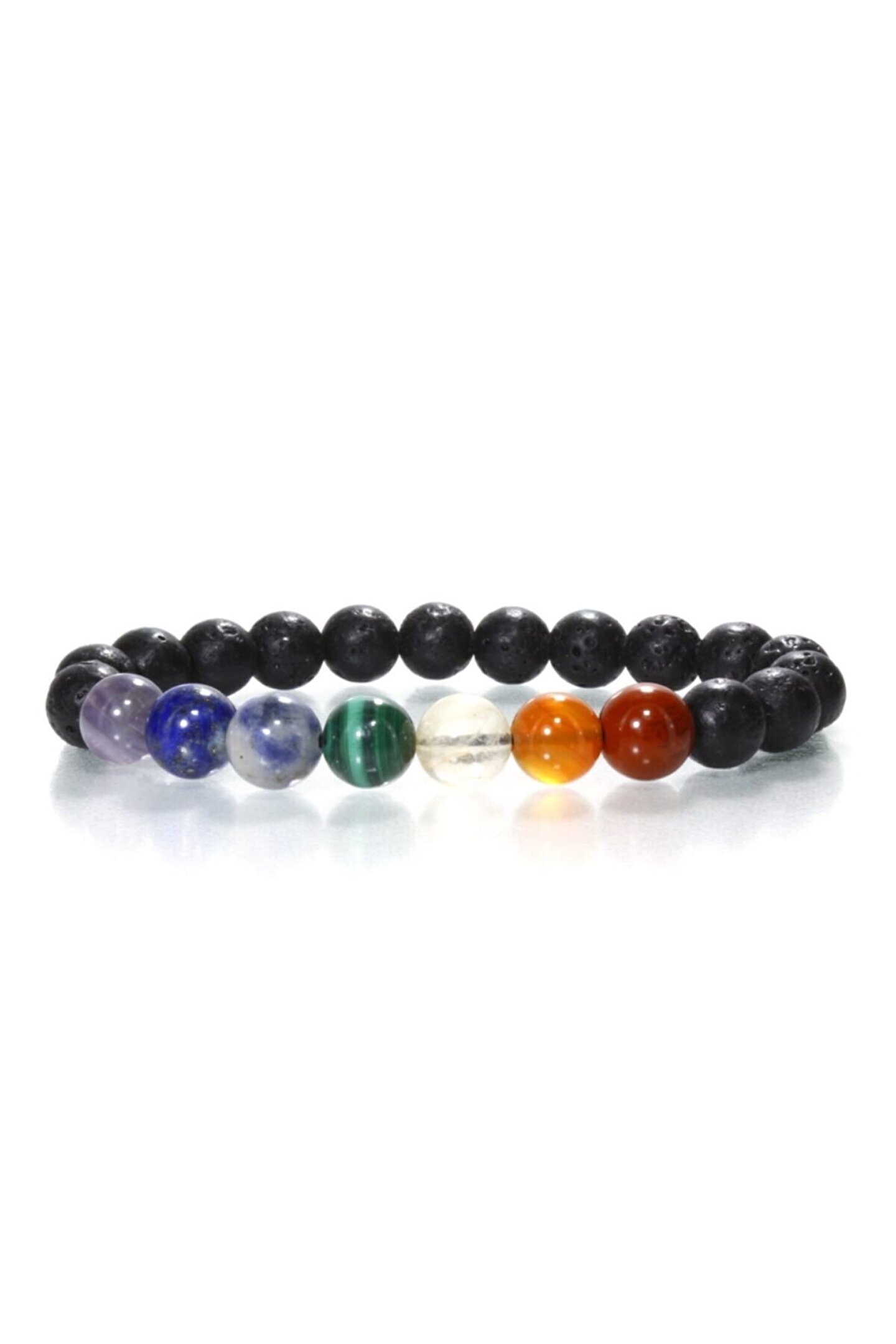 7 Çakra - 7 Renk Doğal Taş özelliğini taşıması amacıyla yapılmış Çakra Doğal Taş Bileklik 7 Farklı doğal taş içerir. (Akik taşı, Sitrin taşı, Sodalit taşı, Malakit taşı, Lapis taşı, Ametist taşı, Jasper taşı) Bileklik tane ebatları 8 mm'dir. Kök Çakra - Kırmızı - Jasper; Mide Çakra - Turuncu - Akik; Sinir Ağı Çakrası - Sarı - Sitrin; Kalp Çakrası - Yeşil - Malakit; Boğaz Çakrası - Mavi - Sodalit; Göz Çakrası - Lacivert - Lapis Lazuli; Taç Çakra - Mor - Ametist;