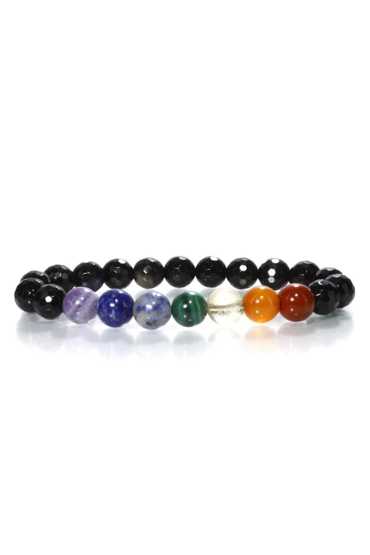 Siyah Akik Doğal Taş Çakra Bileklik Dünyanın en ünlü taşlarından Akik ve Çakra taşları bir araya geldi, Çakra Doğal Taş Bileklik için yepyeni bir tarz dizayn etti.; Akik taşına Çakra Doğal Taş Bileklikte 7 Farklı Çakrayı temsilen 7 Farklı Renkte Doğal Taş eşlik etti.; Şifa, arınma, aura ve çakra temizliği için kullanabileceğiniz Kuvars Doğal Taş Çakra Bileklik sizlerin beğenisine sunuldu.; Bileklik tane ebatları 8 mm'dir.; Kök Çakra - Kırmızı - Jasper ; Mide Çakra - Turuncu - Akik ; Sinir Ağı Çakrası - Sarı - Sitrin ; Kalp Çakrası - Yeşil - Malakit ; Boğaz Çakrası - Mavi - Sodalit ; Göz Çakrası - Lacivert - Lapis Lazuli ; Taç Çakra - Mor - Ametist ;