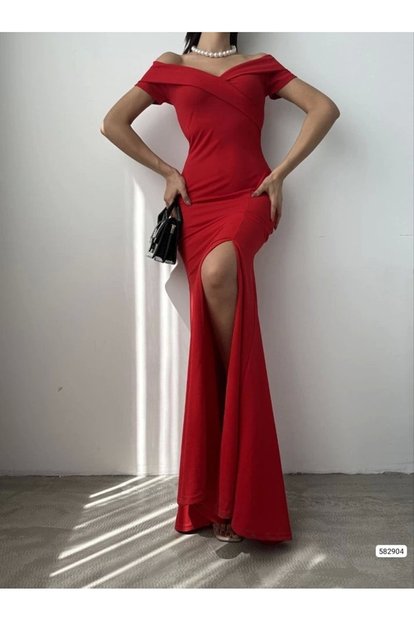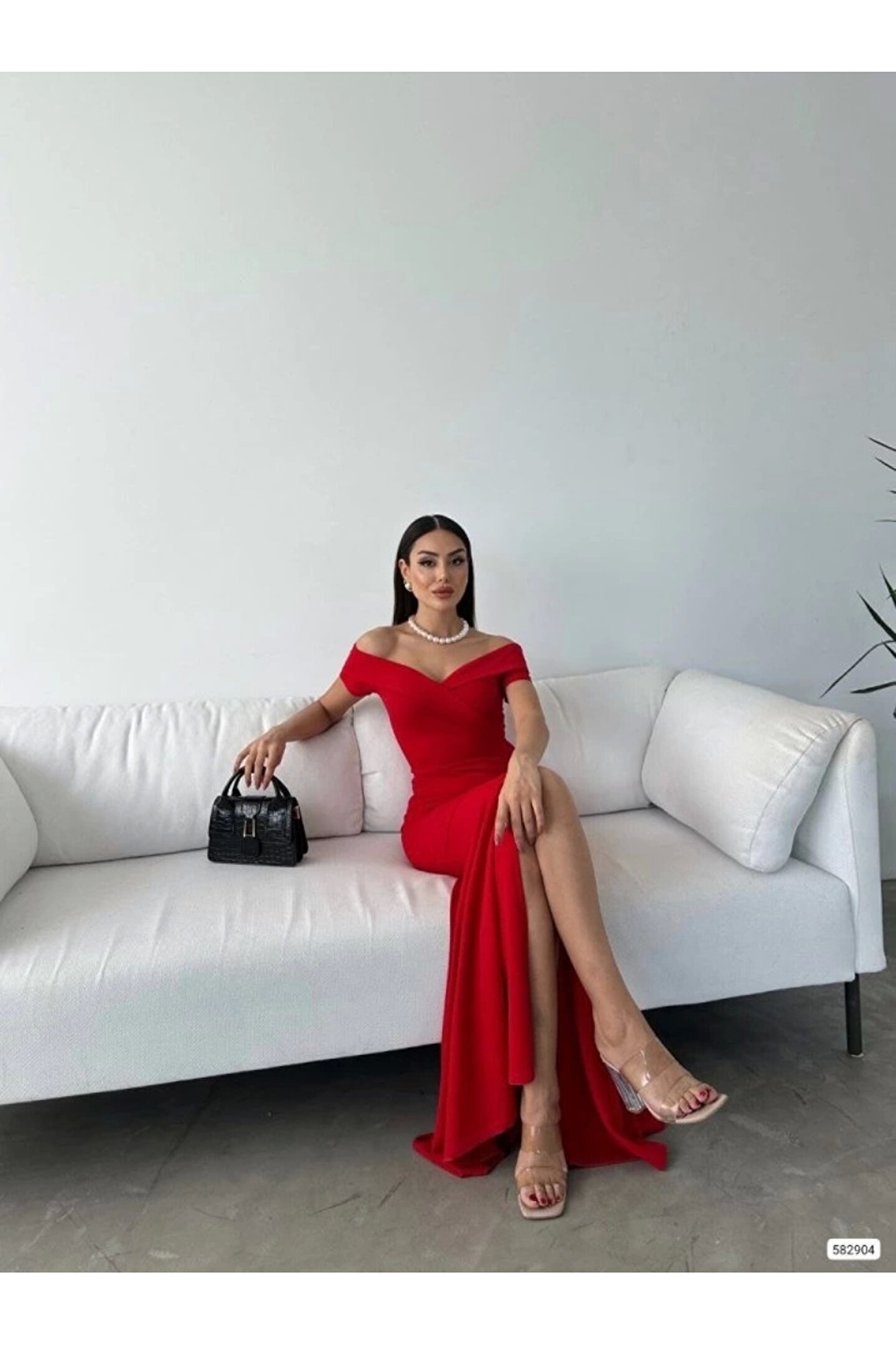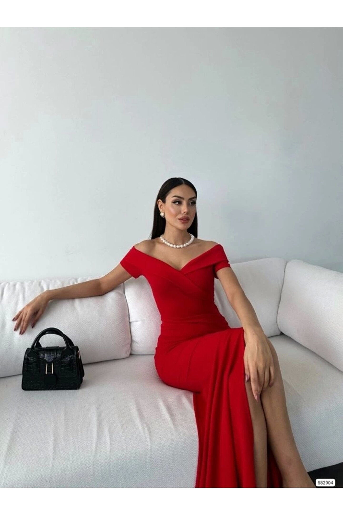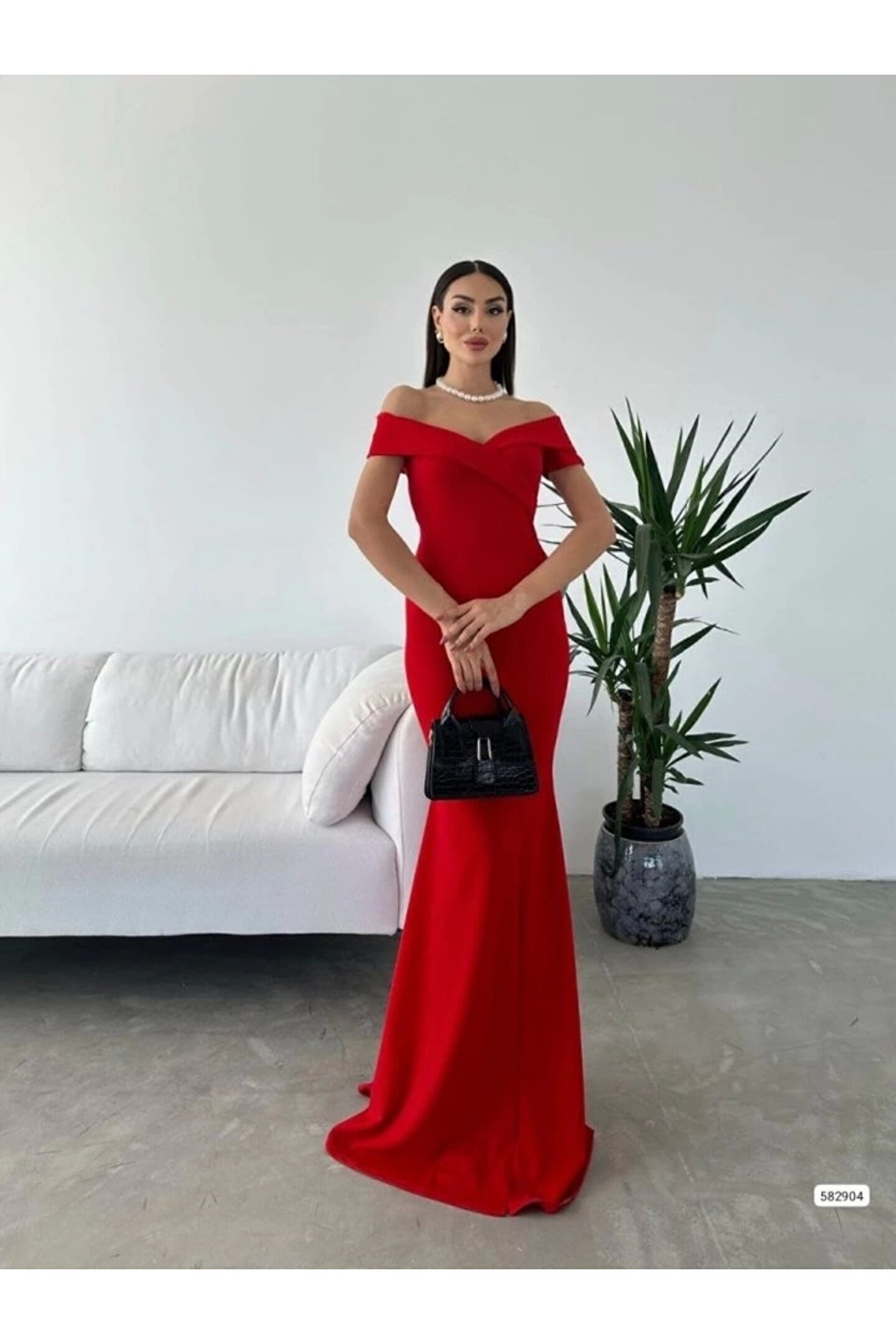 Kadın Dalgıç Kumaş Kayık Yaka Ve Dekolte Detaylı Elbise