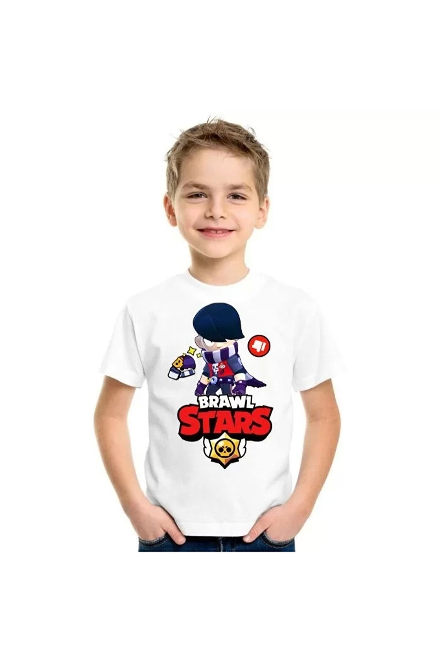 Unisex Bisiklet Yaka Kısa Kol Baskılı Çocuk T-Shirt - Beyaz