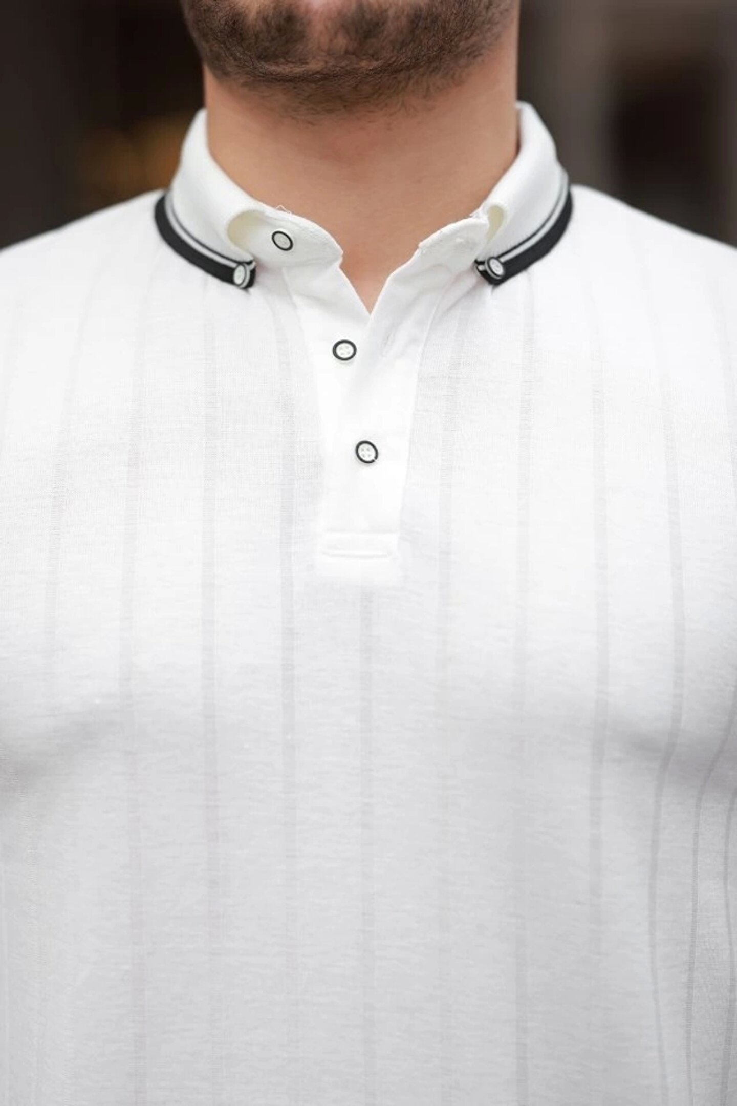 Erkek Düğme Yakalı Jakar Kumaş Kısa Kollu Tişört