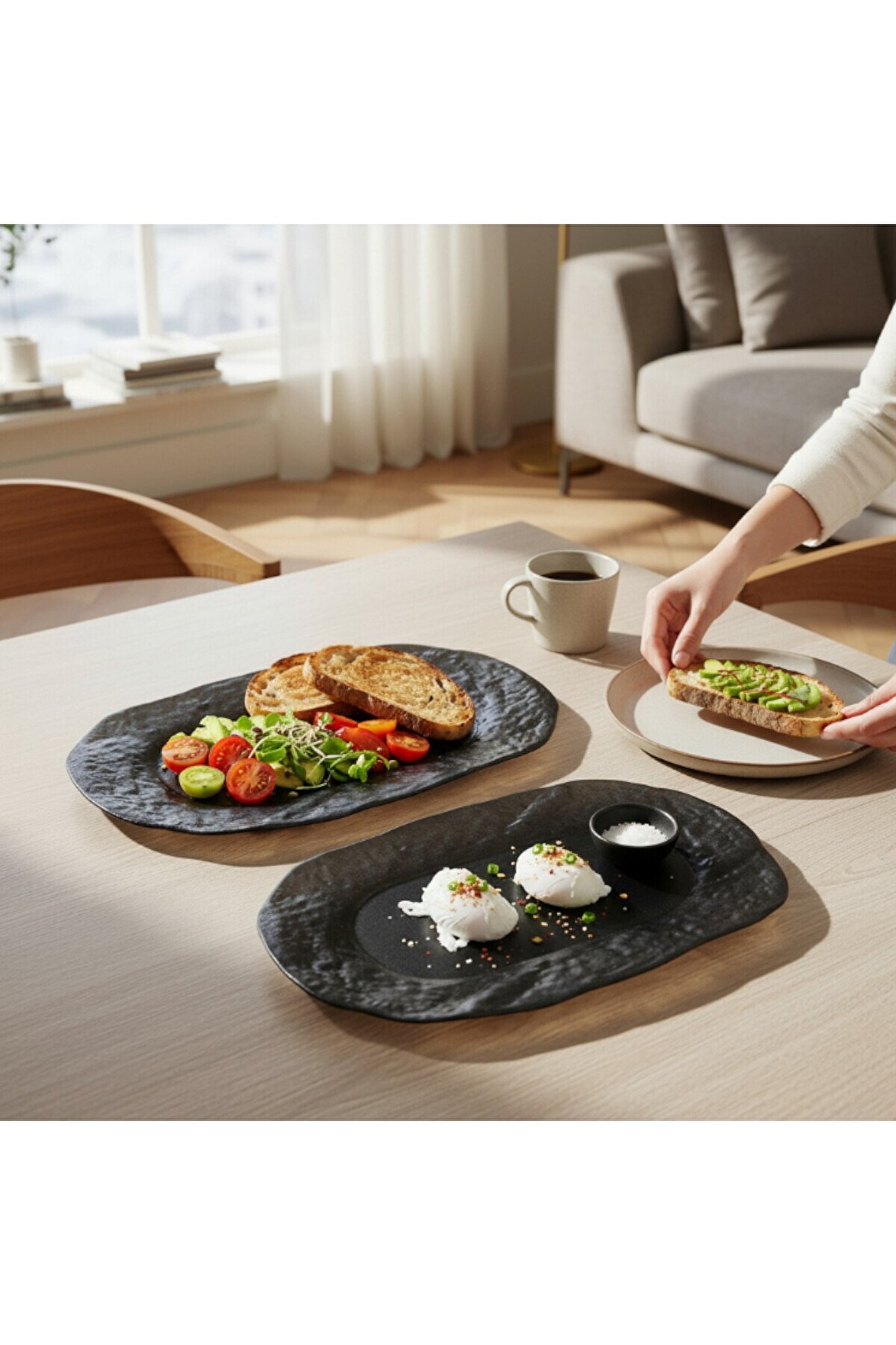 İREA PORSELEN Ruw Glam 34cm Porselen Dikdörtgen Gondol Kayık Tabak Sushi Tabağı 2 Adet
