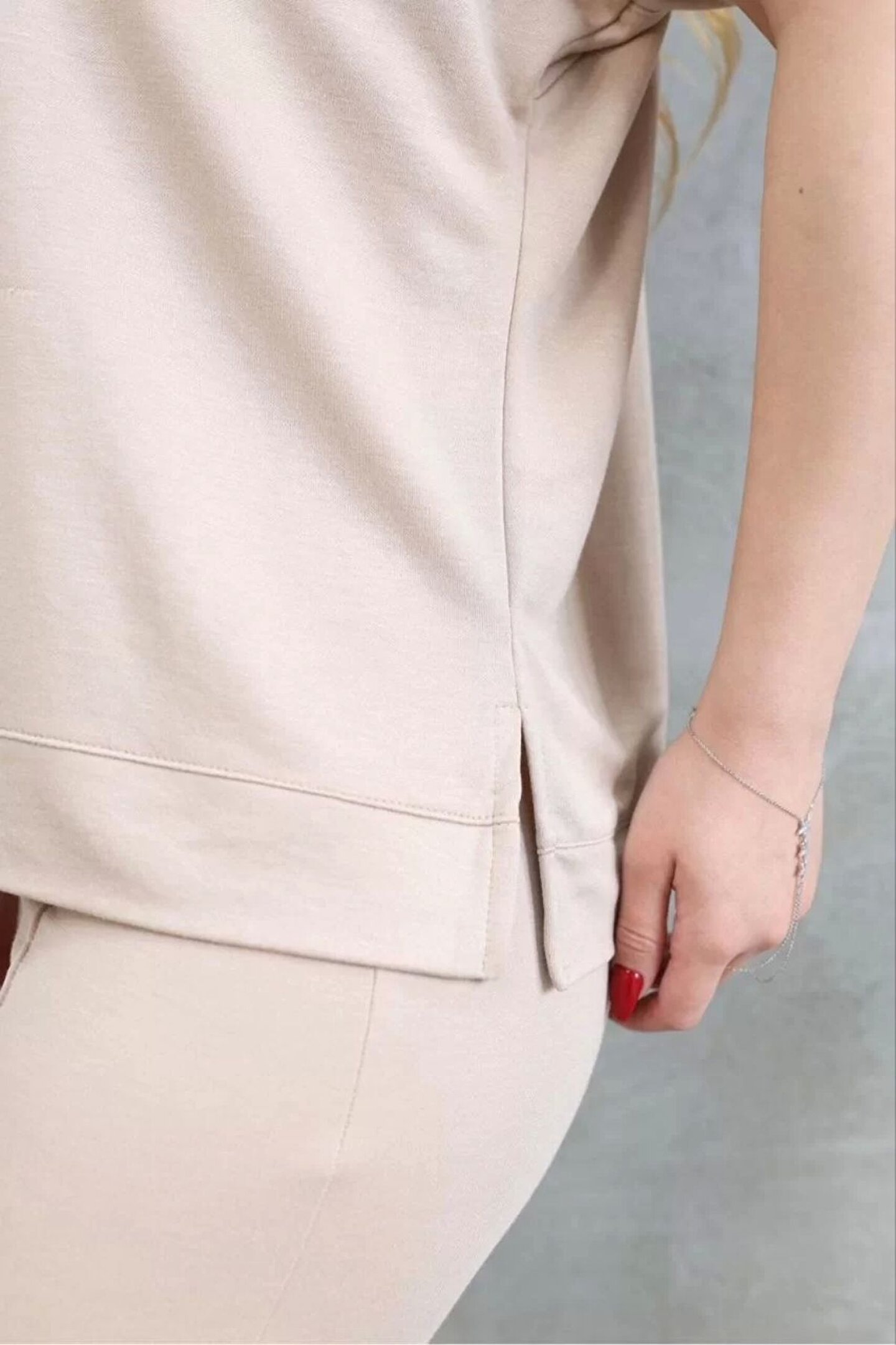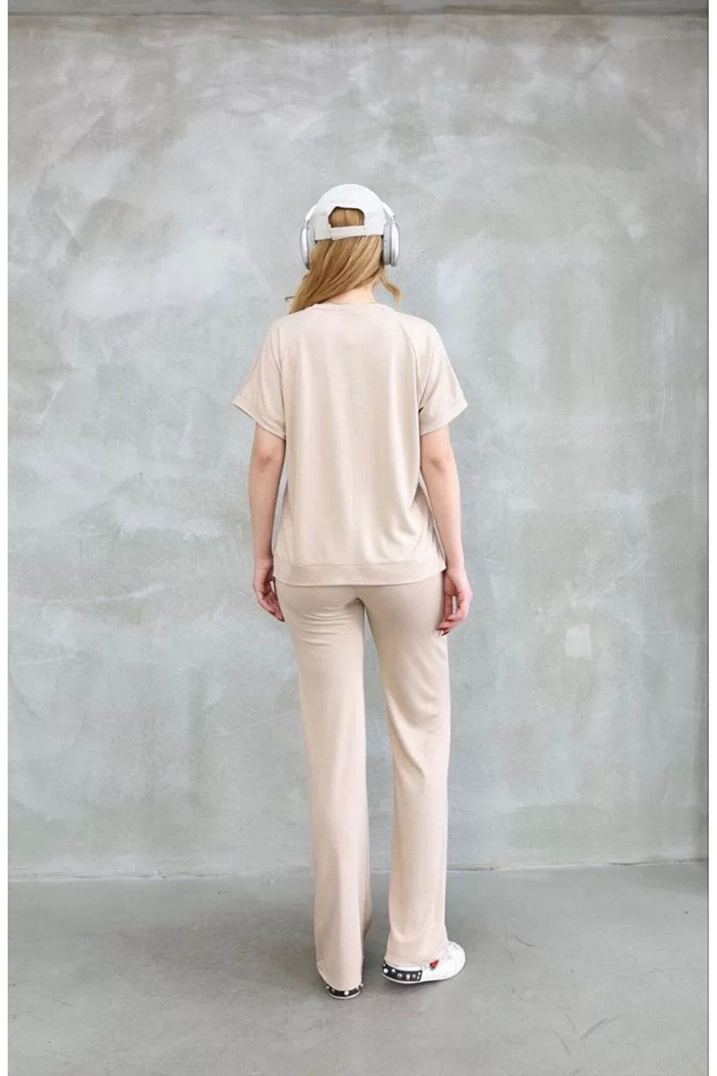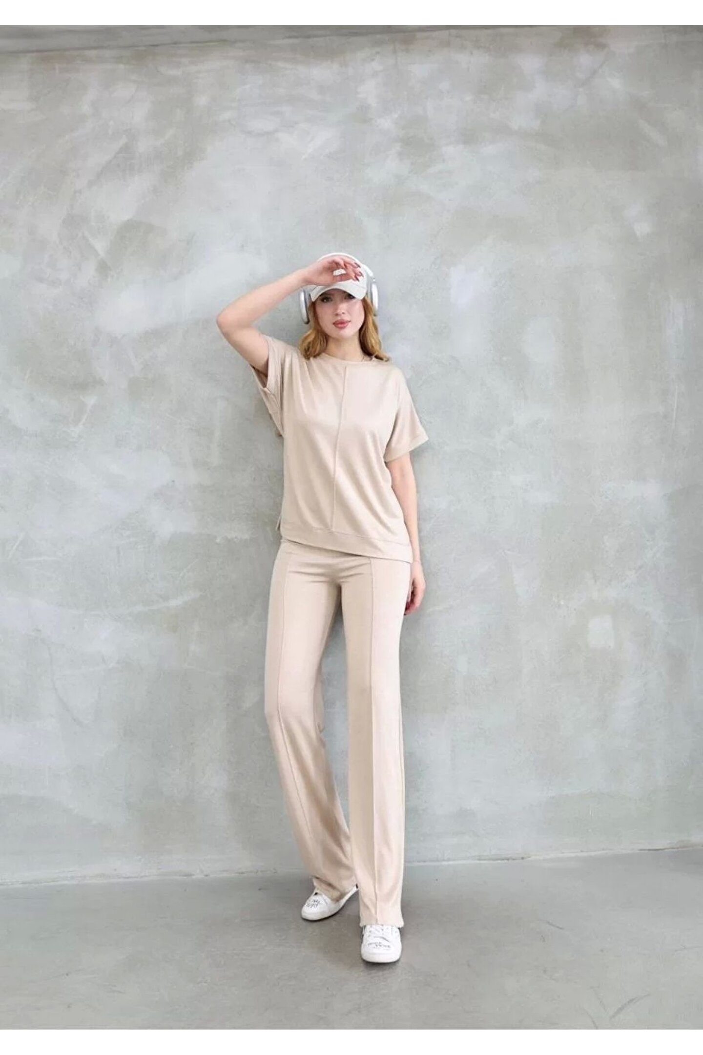 Osy Modal Yumuşak Dokulu Kumaş Bisiklet Yaka Kısa Kollu Takım - Bej