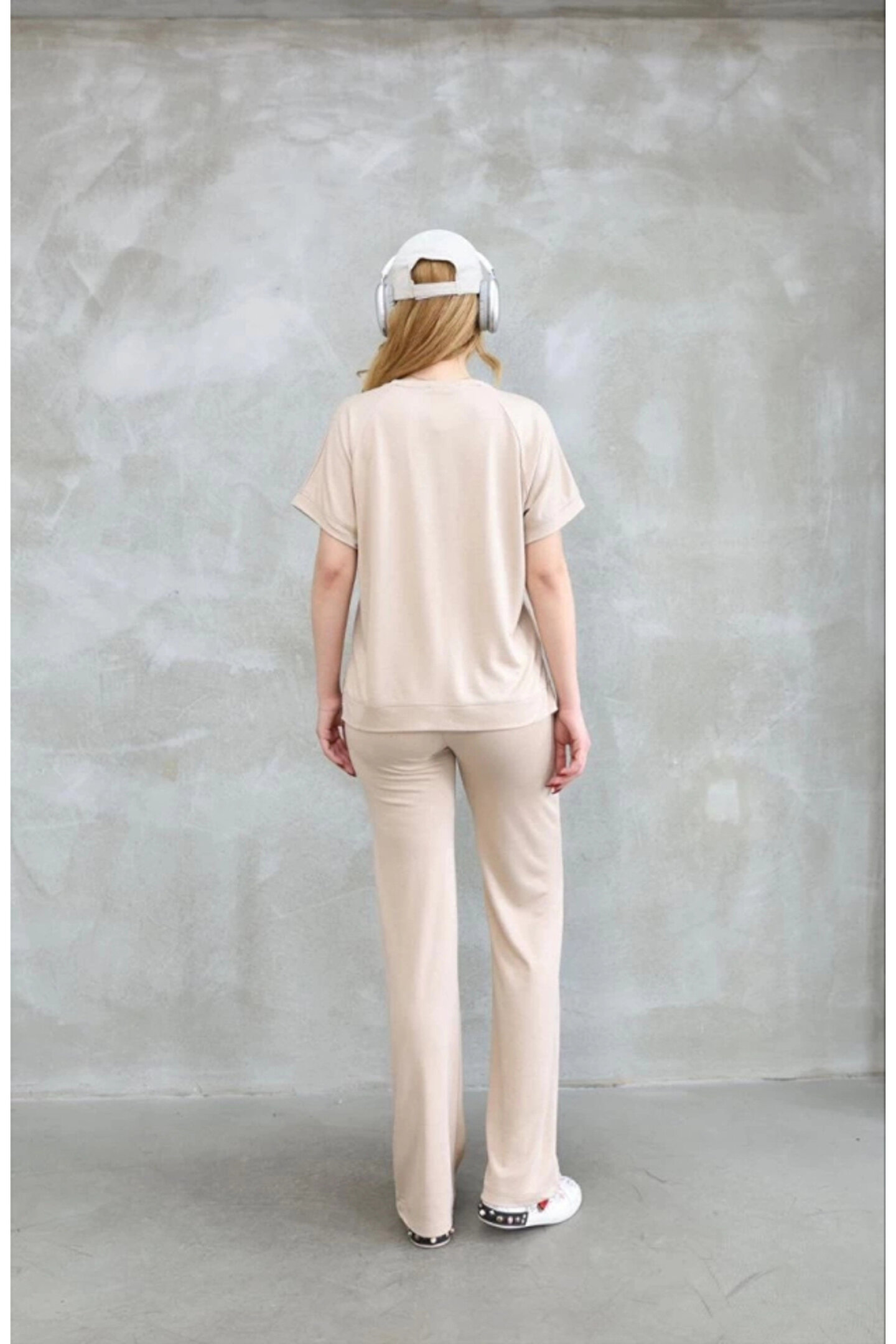Osy Modal Yumuşak Dokulu Kumaş Bisiklet Yaka Kısa Kollu Takım - Bej
