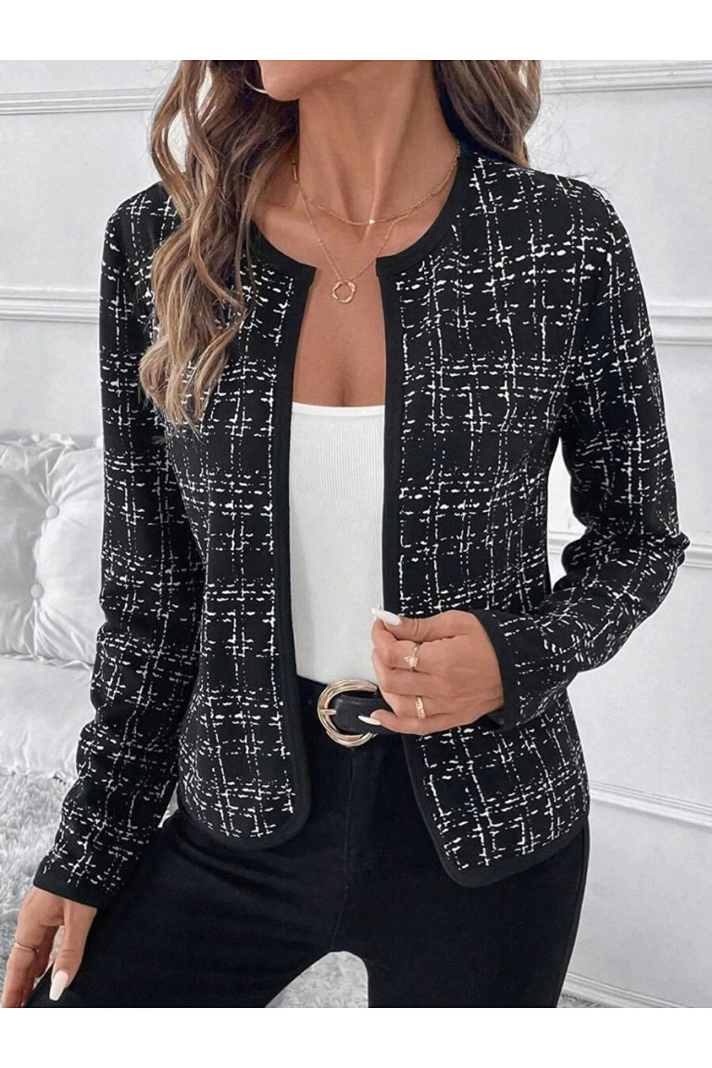 Kadın Uzun Kollu önü Açık şanel Kısa Ceket
