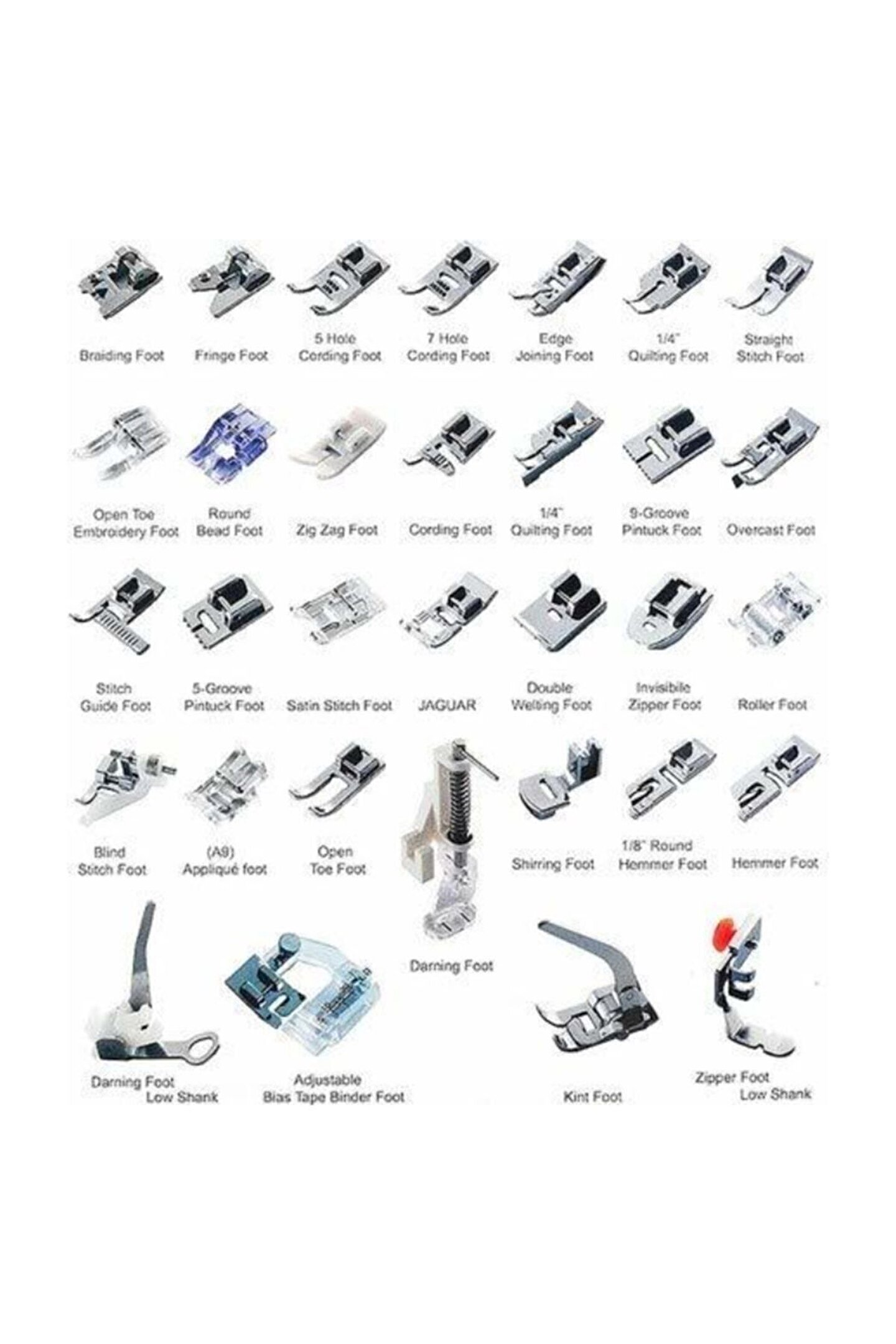 Tokıa Ev Tipi Aile Dikiş Makinası 32 Parça Ayak Seti Ev tipi dikiş makinalarına uyumludur.; ; Singer Janome Brother Bir Çok Ev tipi Aile Dikiş Makinası ve Janome, Brother, Singer, Zetina, Juki Aile Makinaları ile uyumludur.; ; Sanayi tipi dikiş makineleri, eski tip dikiş makineleri ve mini tip dikiş makineleri ile uyumlu değildir.; ; Pakette 32 çeşit ayak bulunmaktadır.; ; Makinede yalnızca ayak değişimi yaparak farklı tekniklerde dikiş dikmeyi sağlayabilirsiniz.; ; Bazı ev tipi makinalarında ayak üst bağlantı parçası ile birlikte çalışmaktadır.; ; Paket içeriği aşağıdaki gibidir.; ; Ürünlerin kullanma talimatı bulunmaktadır.; Örgü Ayağı Saçaklama Ayağı 5 li Kordon Ayağı 7 li Kordon Ayağı Kenar Birleştirme Ayağı 1/4 Kapitone Ayağı Düz Dikiş Ayağı Açık Parmak Piko Aplike Ayağı Boncuk Ayağı Plastik Zigzag Ayağı 3lü Kordon Ayağı 1/4 Kapitone Ayağı (Dayamalı) 9 Kanallı Nervür Ayağı Overlok Ayağı Dikiş Kılavuzu Ayağı 5 Kanallı Pile Ayağı Saten Ayağı Zigzag Ayağı 2 Kanallı Fitil Ayağı ; Gizli Fermuar Ayağı Tekerlekli Ayak Siperli Gizli Dikiş Ayağı Aplike Ayağı Açık Parmak Aplike Ayağı Serbest Nakış Örme Ayağı Büzgü Ayağı 1/8 Kıvırma Ayağı Kıvırma Ayağı Kapitone Ayağı Biye Aparalı Dikiş Ayağı Örgü Ayağı Ayarlı Sağ-Sol Fermuar Ayağı (Alçak) ;