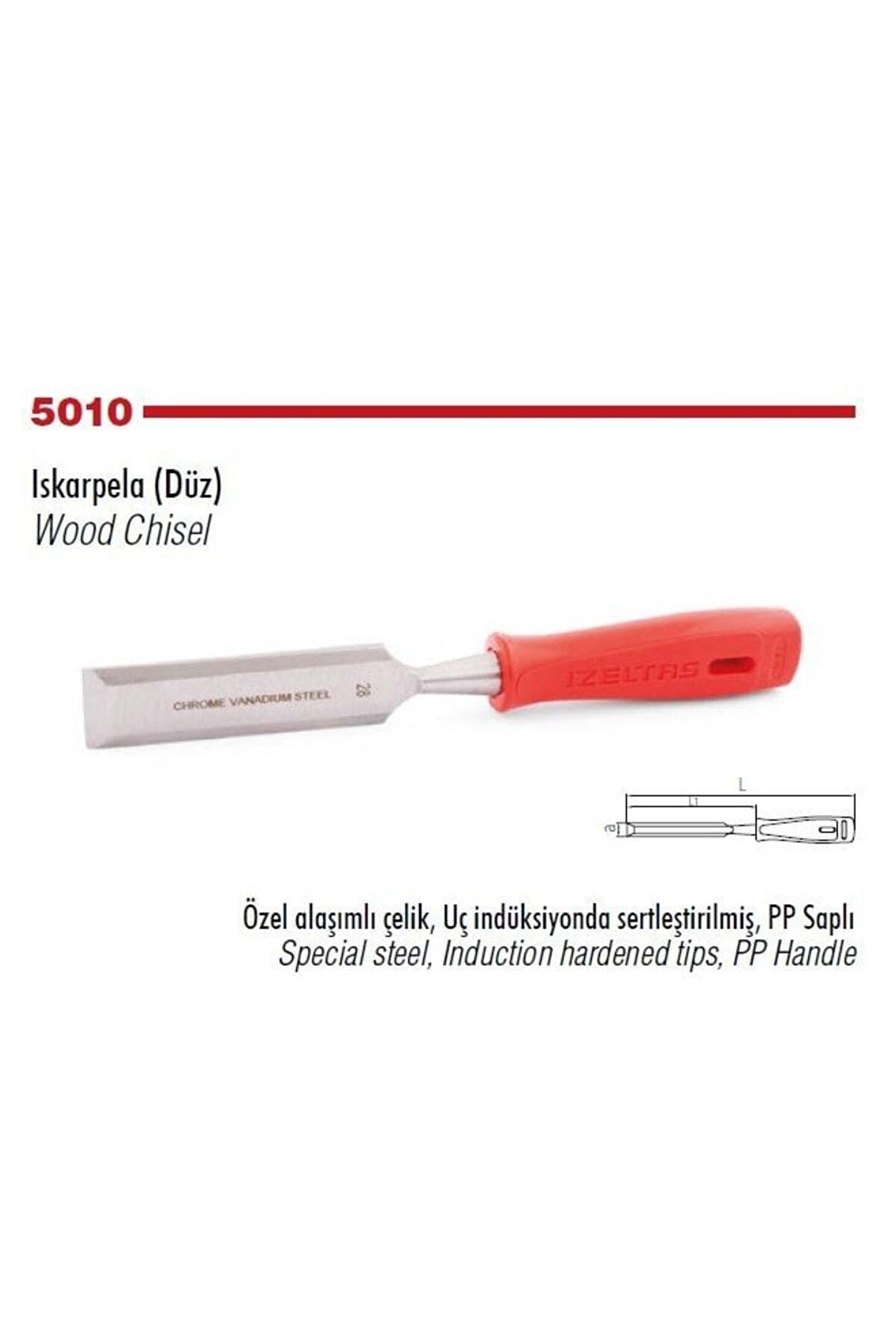İZELTAŞ Düz Iskarpela 20 mm(5010 23 0020)-Wood Chisel Özel alaşımlı çelik, Uç indüksiyonda sertleştirilmiş, PP Saplı - Special steel, Induction hardened tips, PP Handle