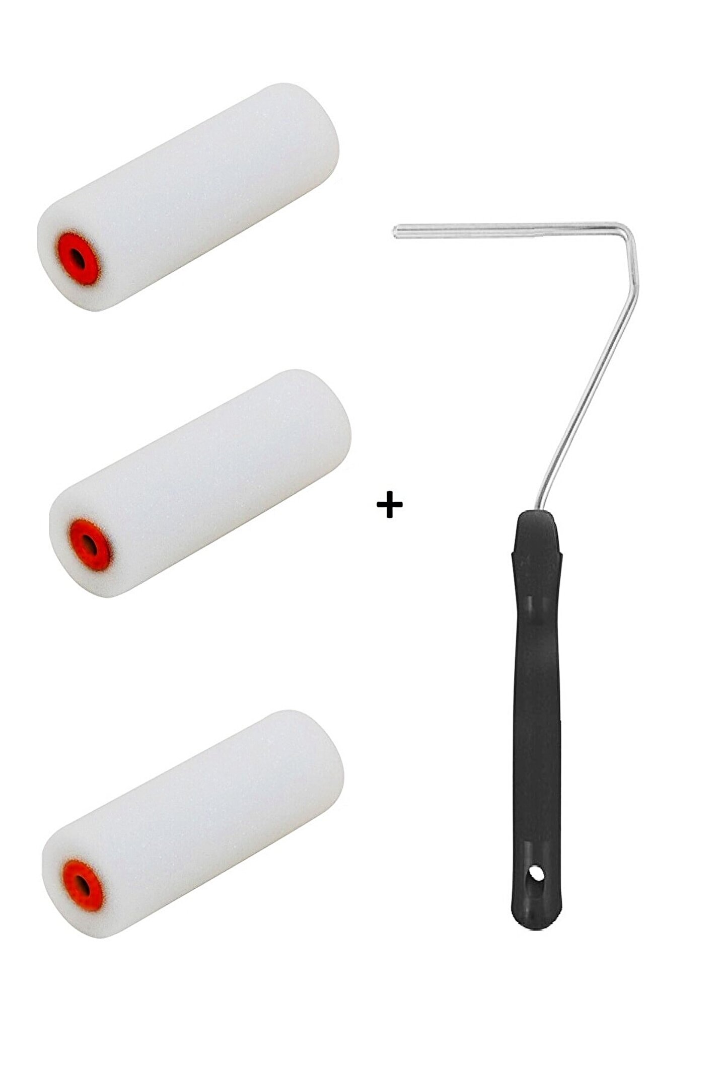İzmir Fırça 10 Cm Sünger Rulo 3 Adet + Sap