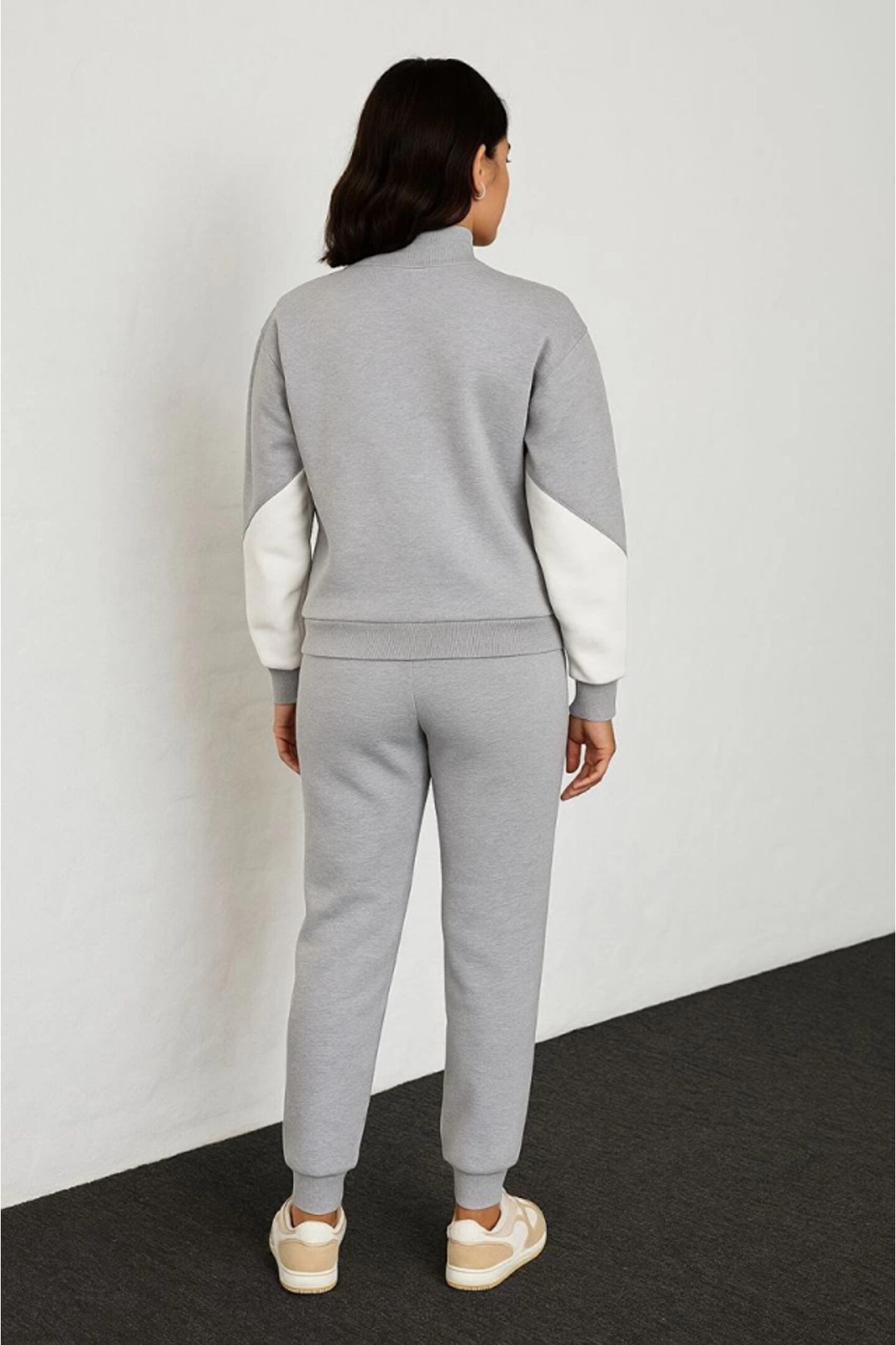 Premium Parçalı Eşofman Takım - Dik Yaka Fermuarlı Sweatshirt - Gri