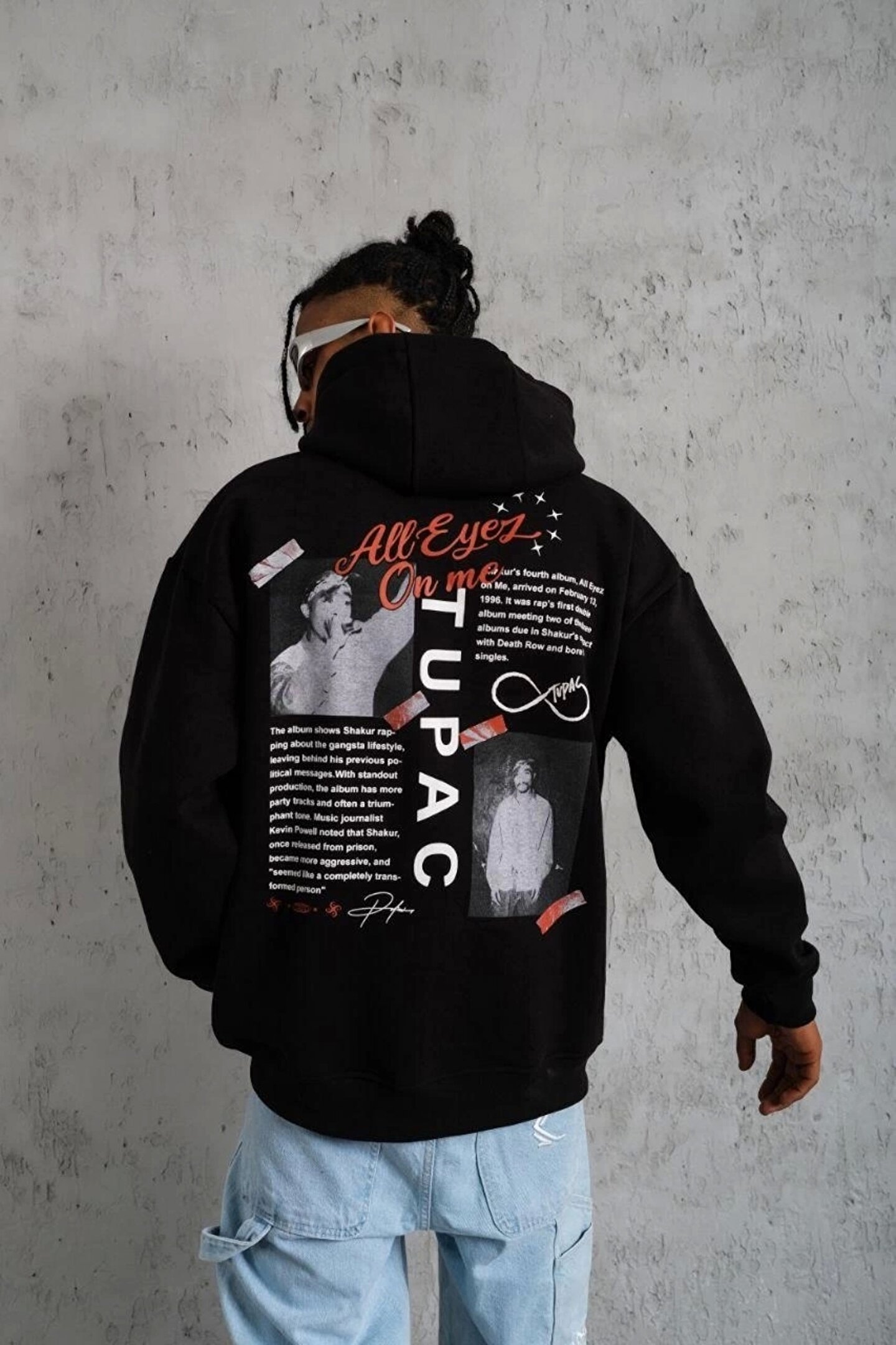 JARDİN ALLURE Erkek Ön Arka Baskılı Kapşonlu Sweat - Siyah