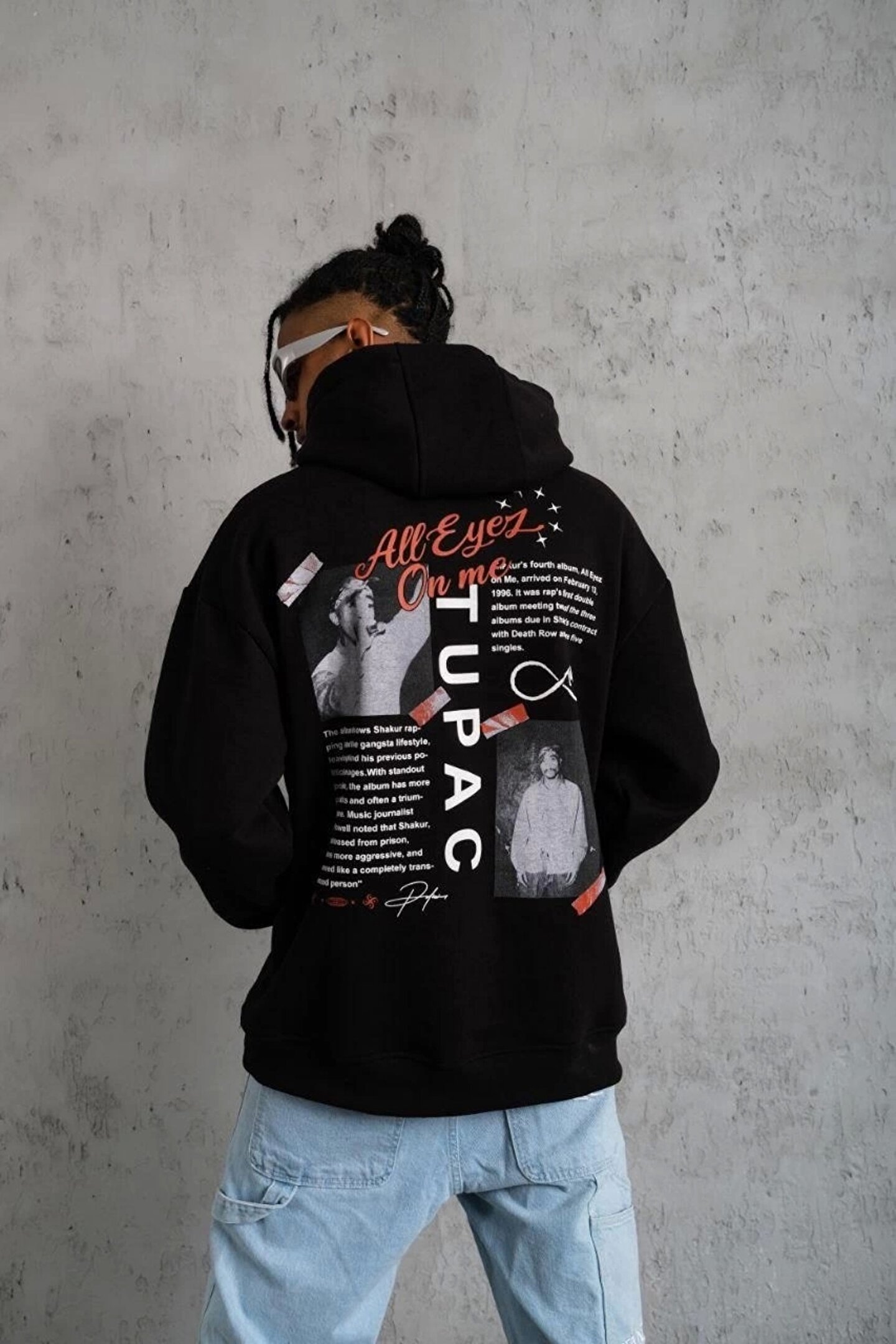 JARDİN ALLURE Erkek Ön Arka Baskılı Kapşonlu Sweat - Siyah