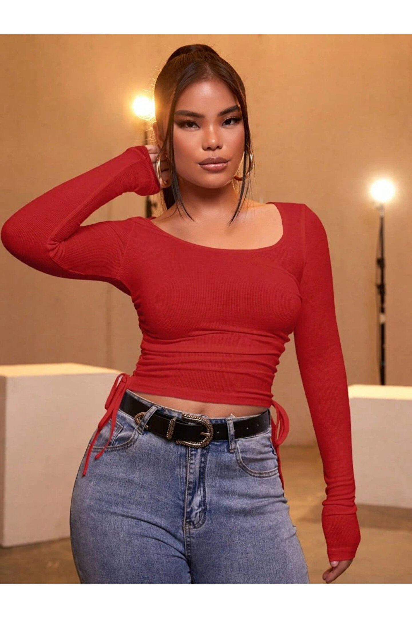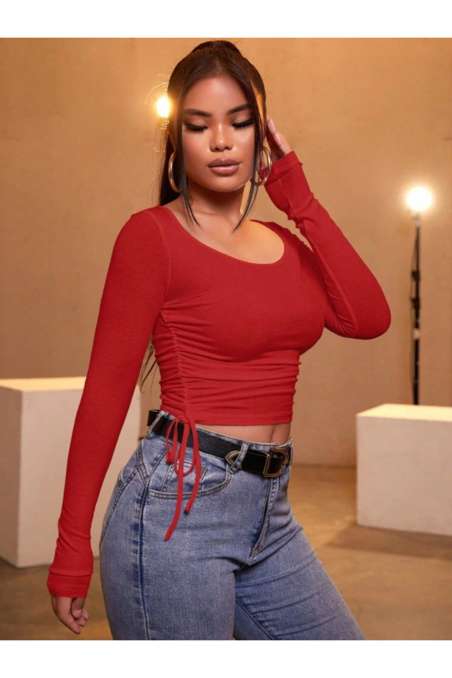 Kadın Kırmızı Kaşkorse Kumaş Bluz Modelin Ölçüleri: Boy:165, Kg:55, Göğüs:90, Bel:72, Kalça: 100 Modelin üzerindeki ürün M/38 bedendir DESEN-Diğerleri; KALIP-Klasik;
