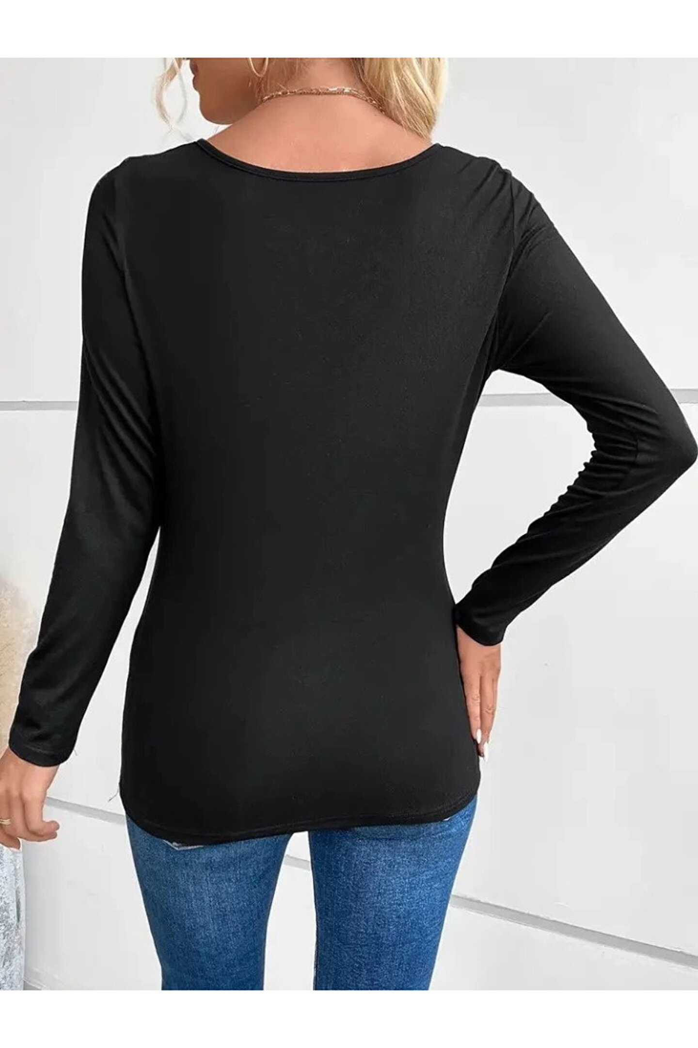 Kadın Uzun Kollu Derin Degaje Yakalı Taşlı Sandy Bluz