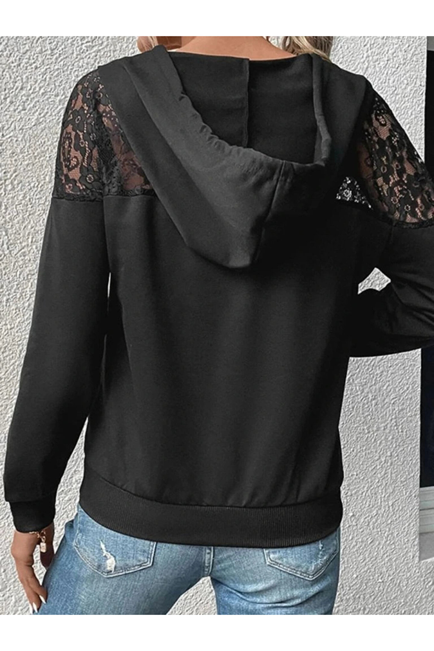 JARDİN ALLURE Kadın Uzun Kollu Kapşonlu Bağcıklı Dantelli Viskon Iki Iplik Bluz