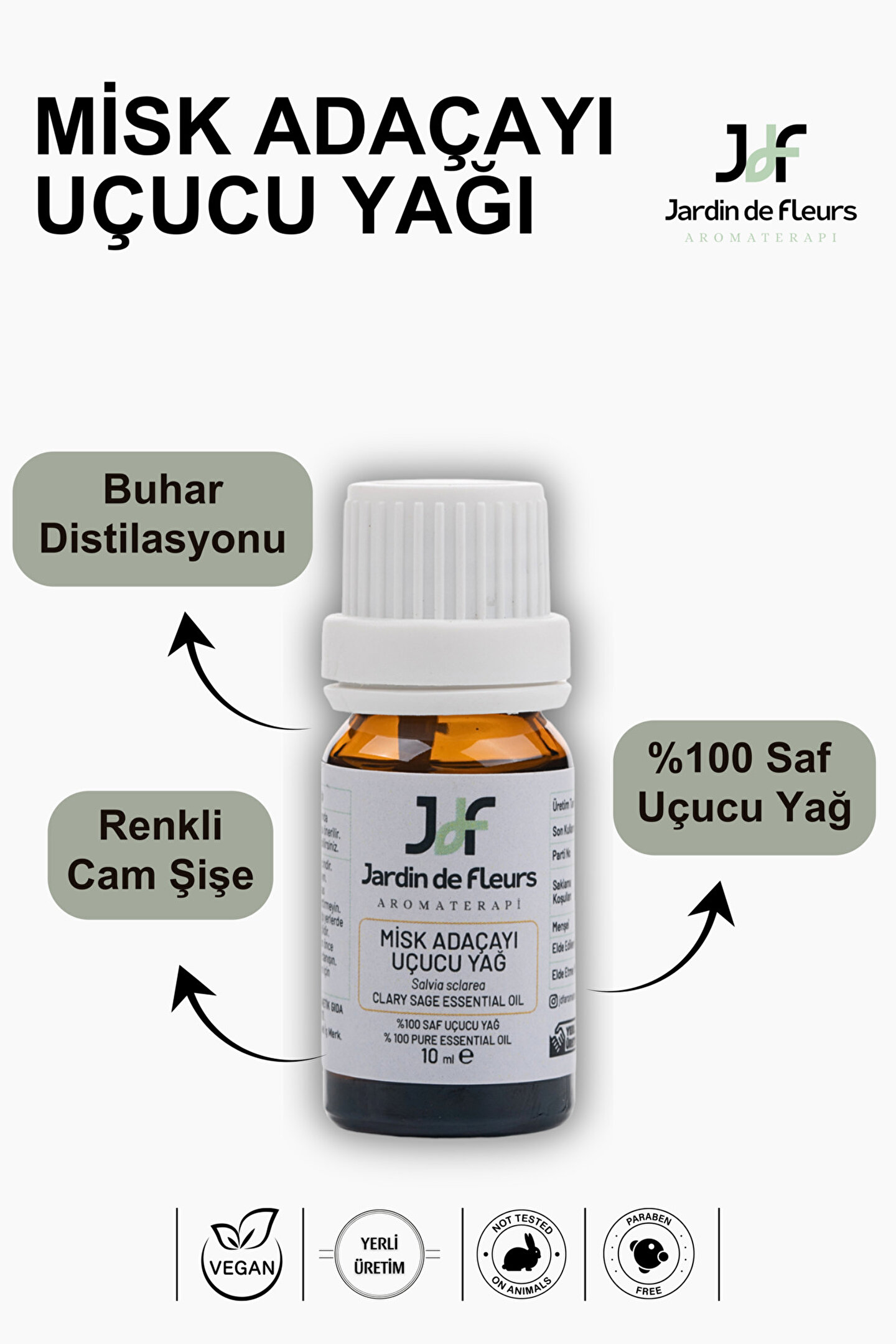 JARDIN DE FLEURS Jdf Misk Adaçayı (CLARY SAGE) Uçucu Yağı 10 ml - %100 Saf Aromaterapi Yağı