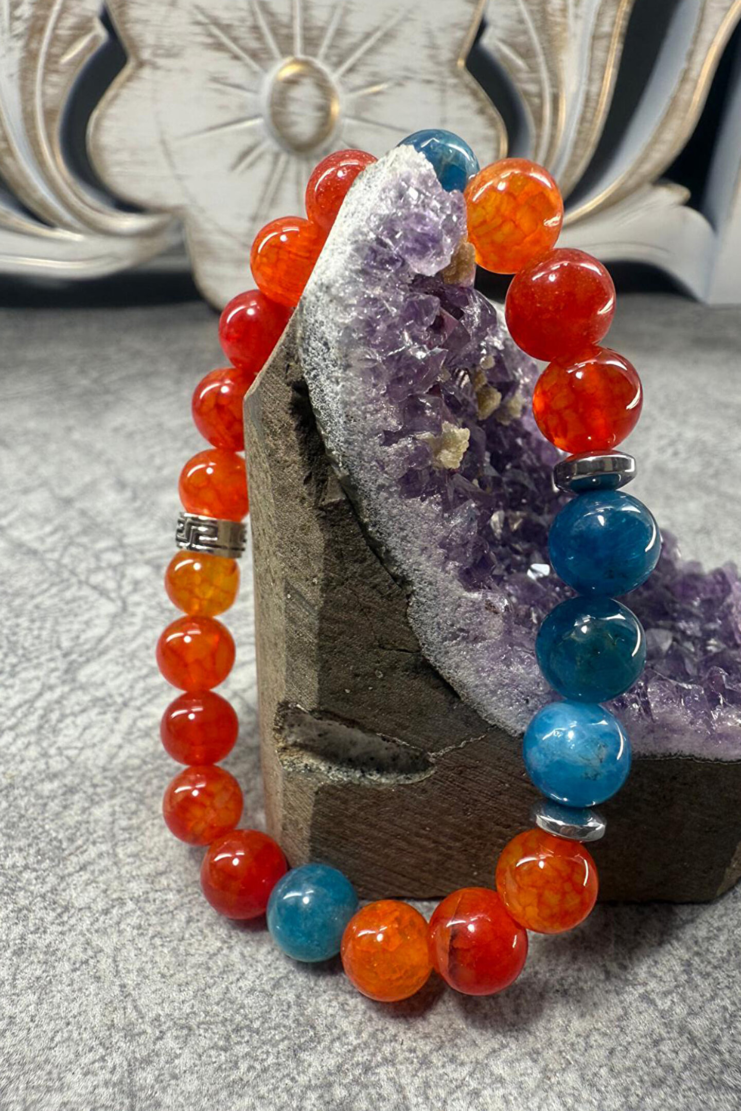 "Eşsiz Ateş Akik ve Apatit taşlarından özel tasarım bileklik. Doğal taşların enerjisiyle stilinizi tamamlayın. Anlamlı hediye seçeneği."