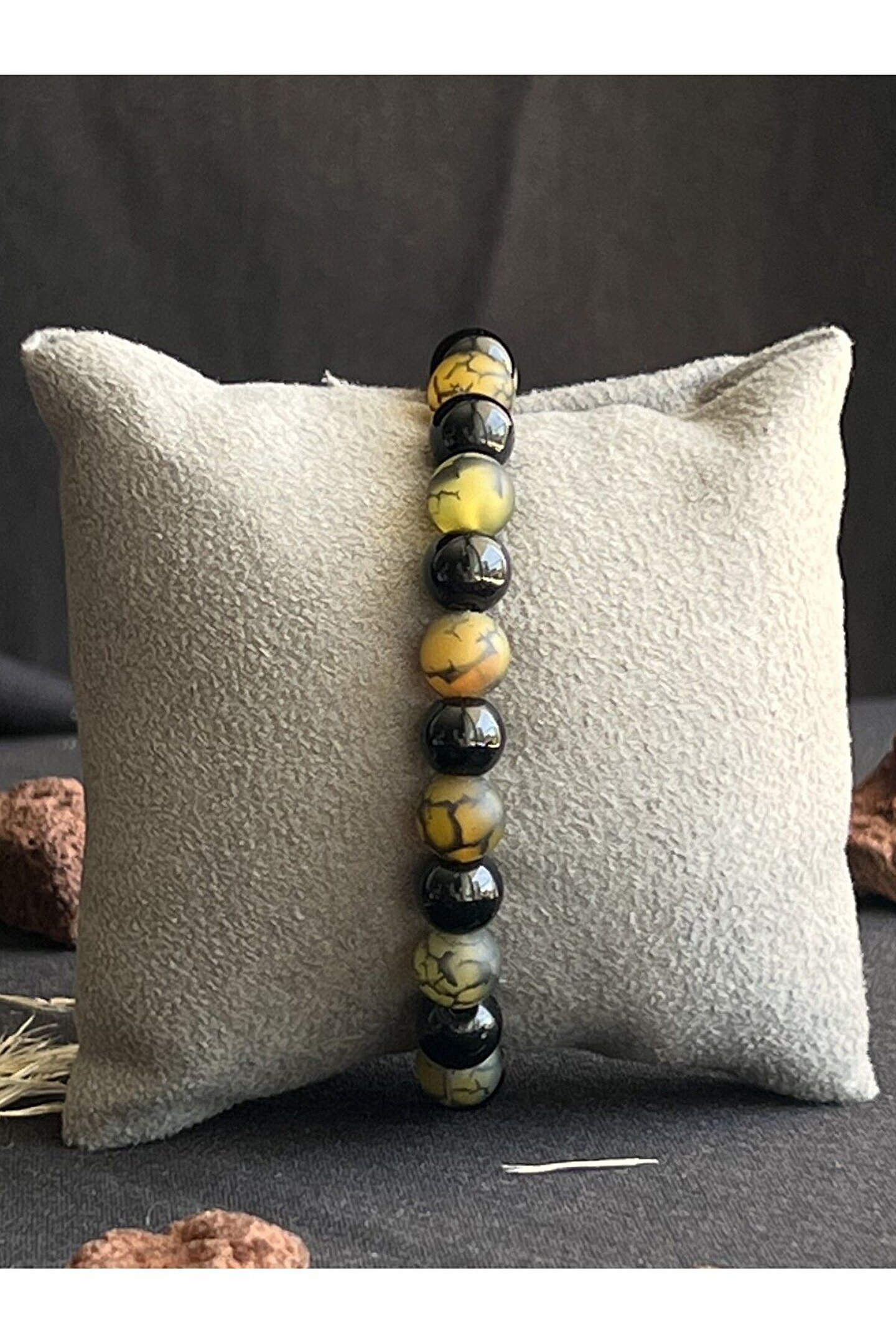 Yosunlu akik kullanımı sayesinde, bu bileklik hem şık hem de doğanın özünü yansıtan bir aksesuar sunar; Doğal taş cinsi ile üretilmiş olup, her bileklik benzersiz ve eşsiz bir görünüm kazandırır; Doğal taş materyaliyle dikkat çeken bu bileklik, zarifliği ve dayanıklılığı bir arada sunar;