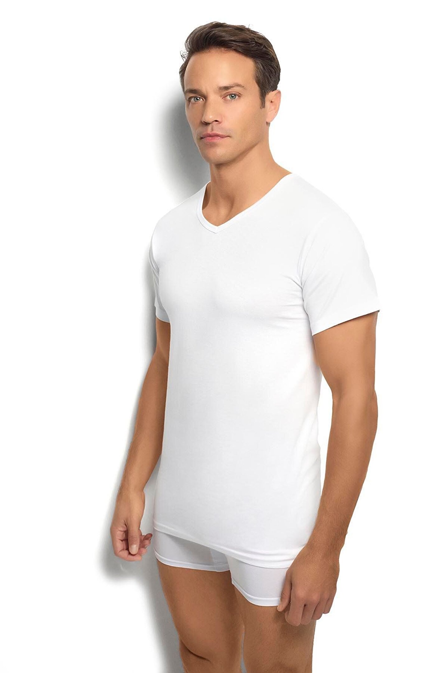 Jiber Erkek Beyaz Pamuklu Kısa Kollu V Yaka Atlet Fanila 3lü Paket-105