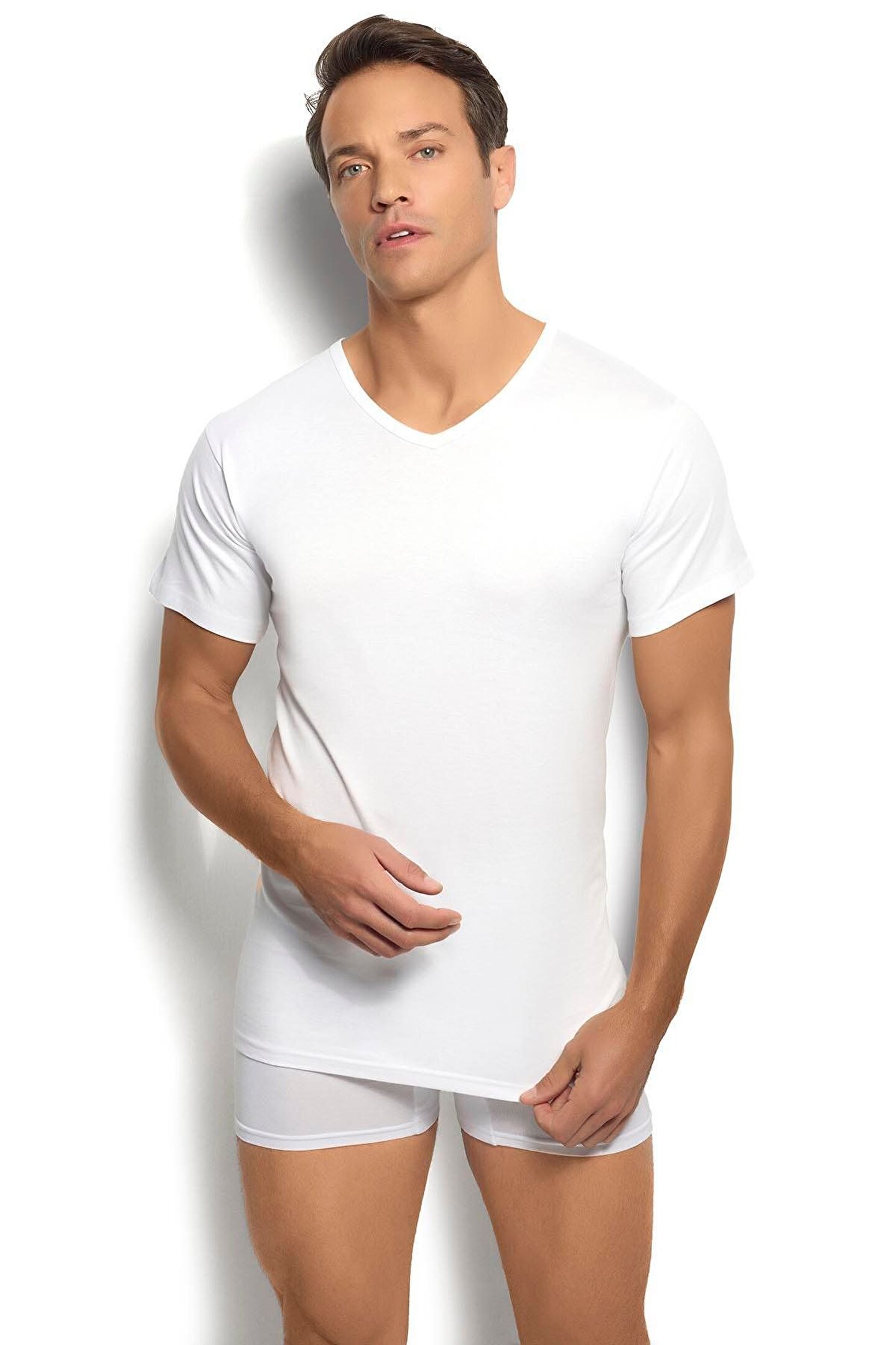 Jiber Erkek Beyaz Pamuklu Kısa Kollu V Yaka Atlet Fanila 3lü Paket-105