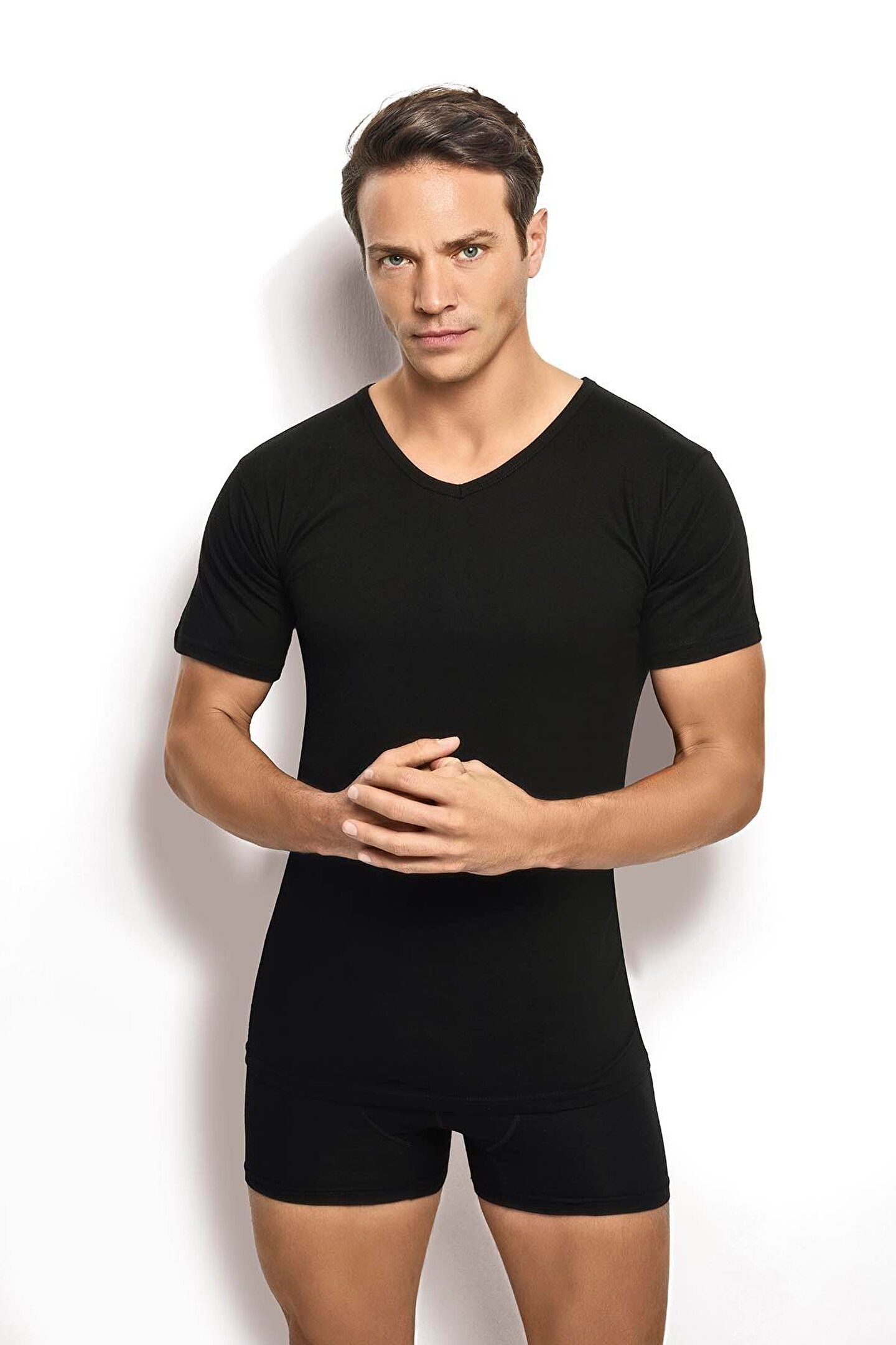 Jiber Erkek Siyah Pamuklu Kısa Kollu V Yaka Atlet Fanila 3lü Paket-112