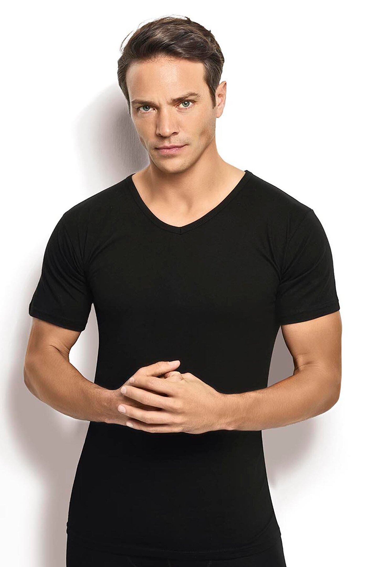 Erkek Siyah Pamuklu V Yaka Atlet 112