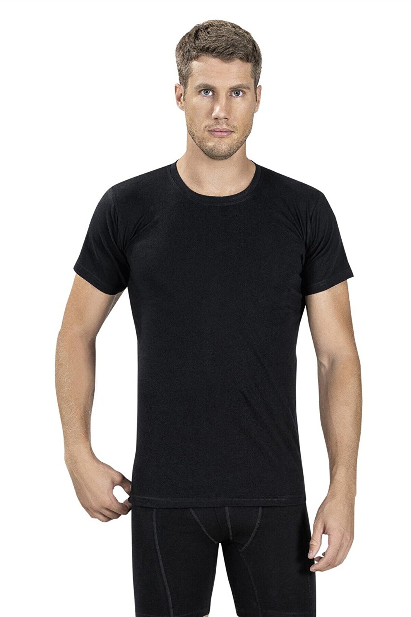 Erkek Siyah Sıfır Yaka Pamuklu Yarım Kollu Fanila