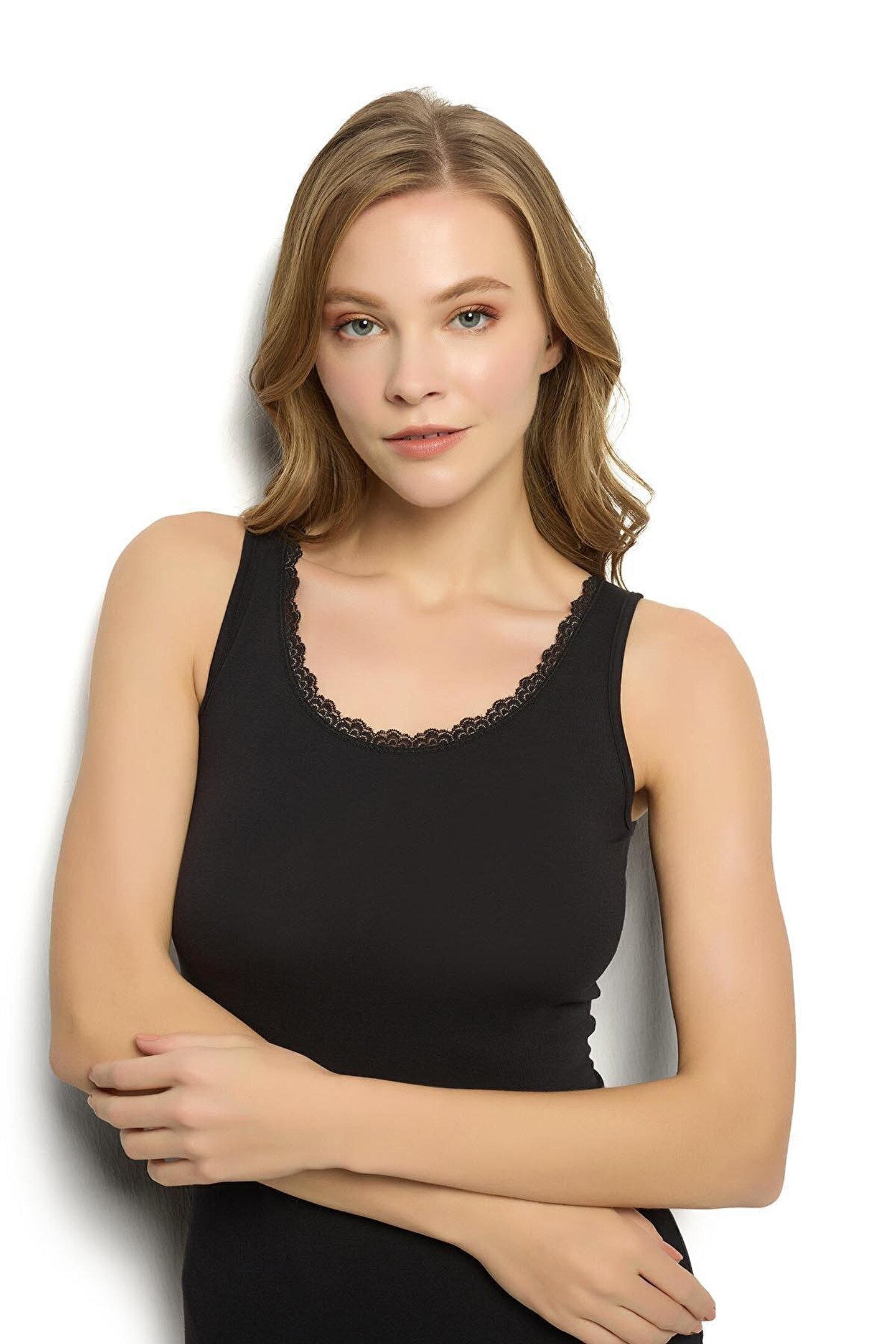 Kadın Siyah Modal Atlet Güpürlü 12 adet Jiber 616