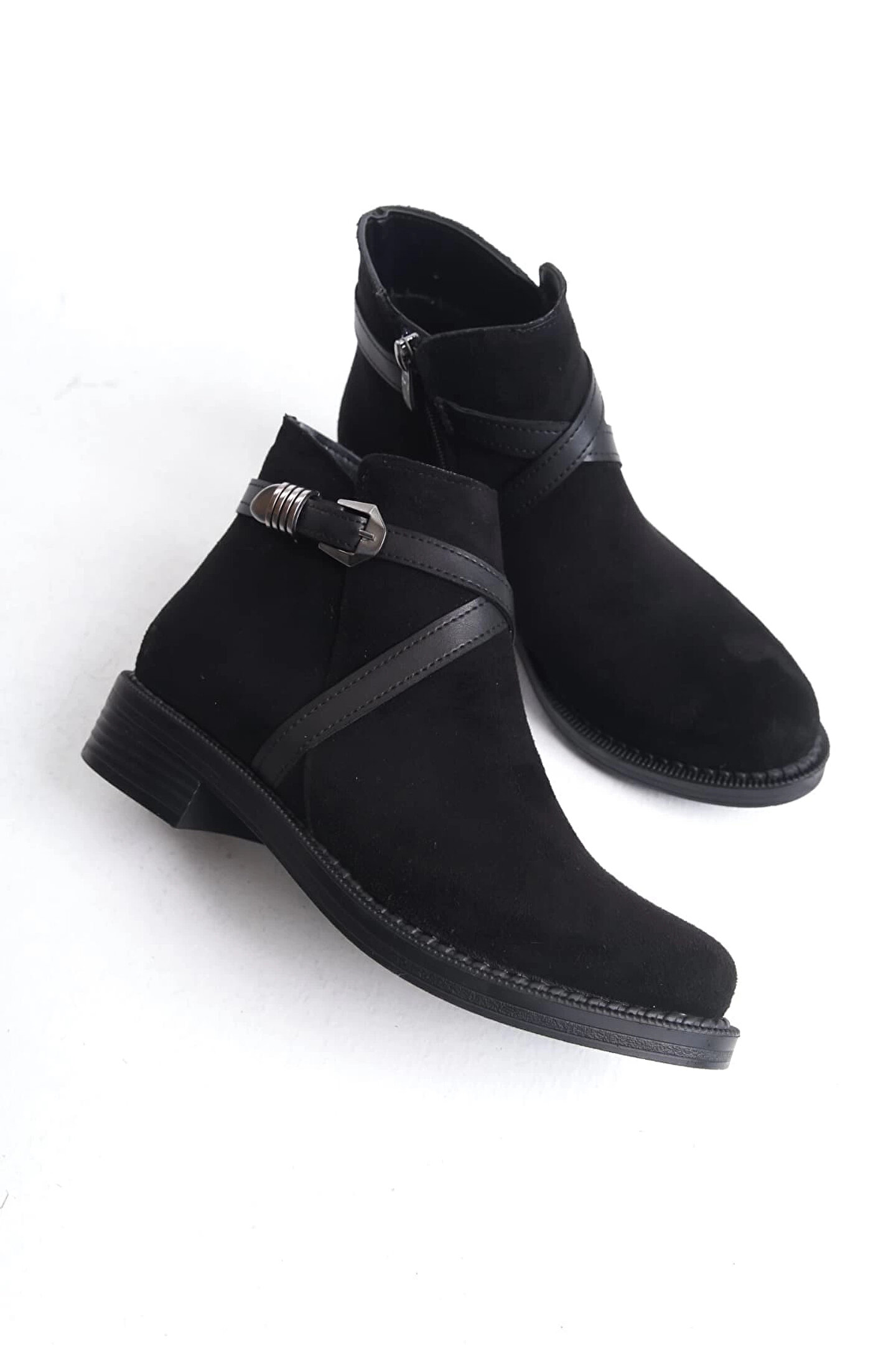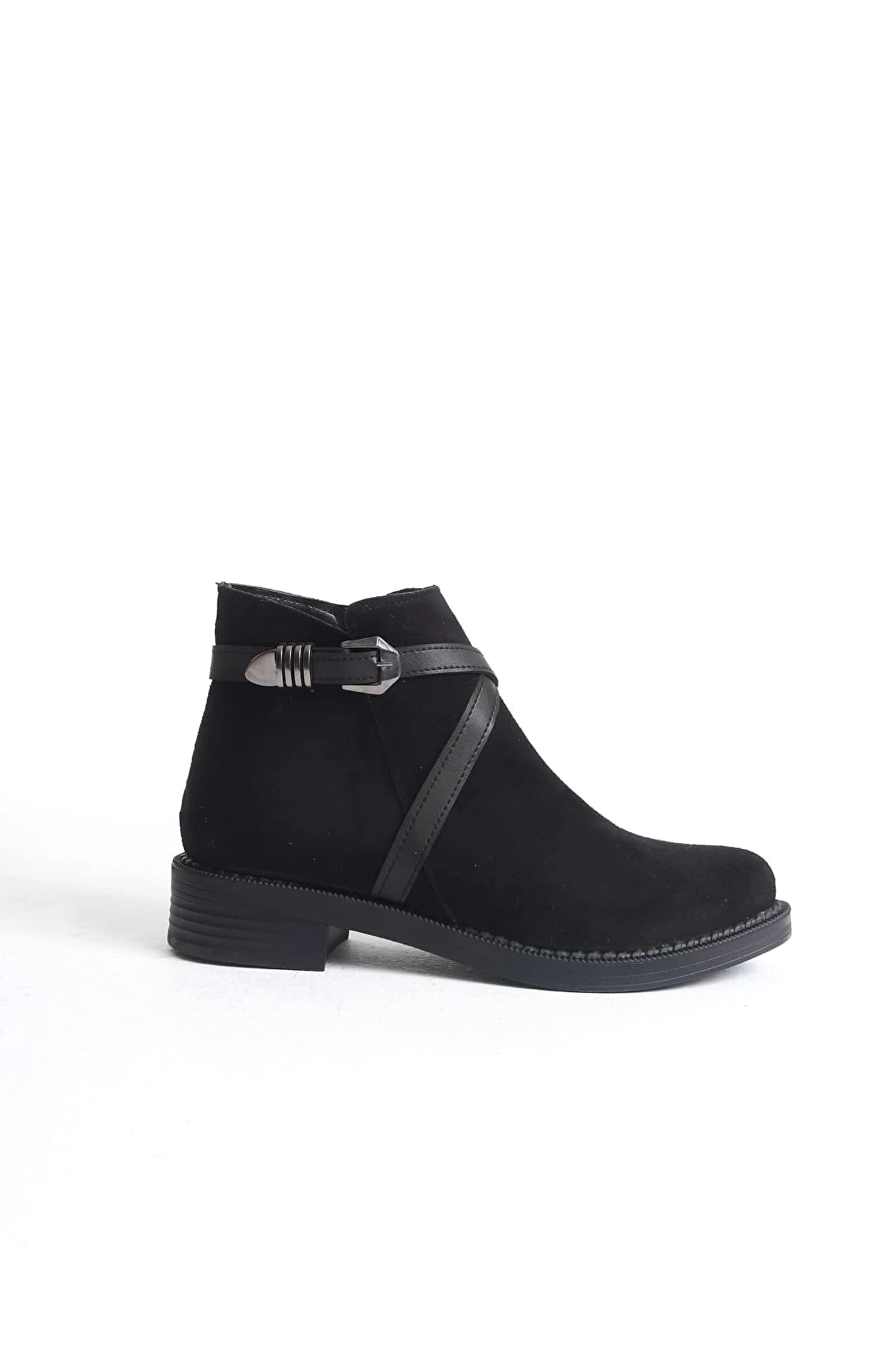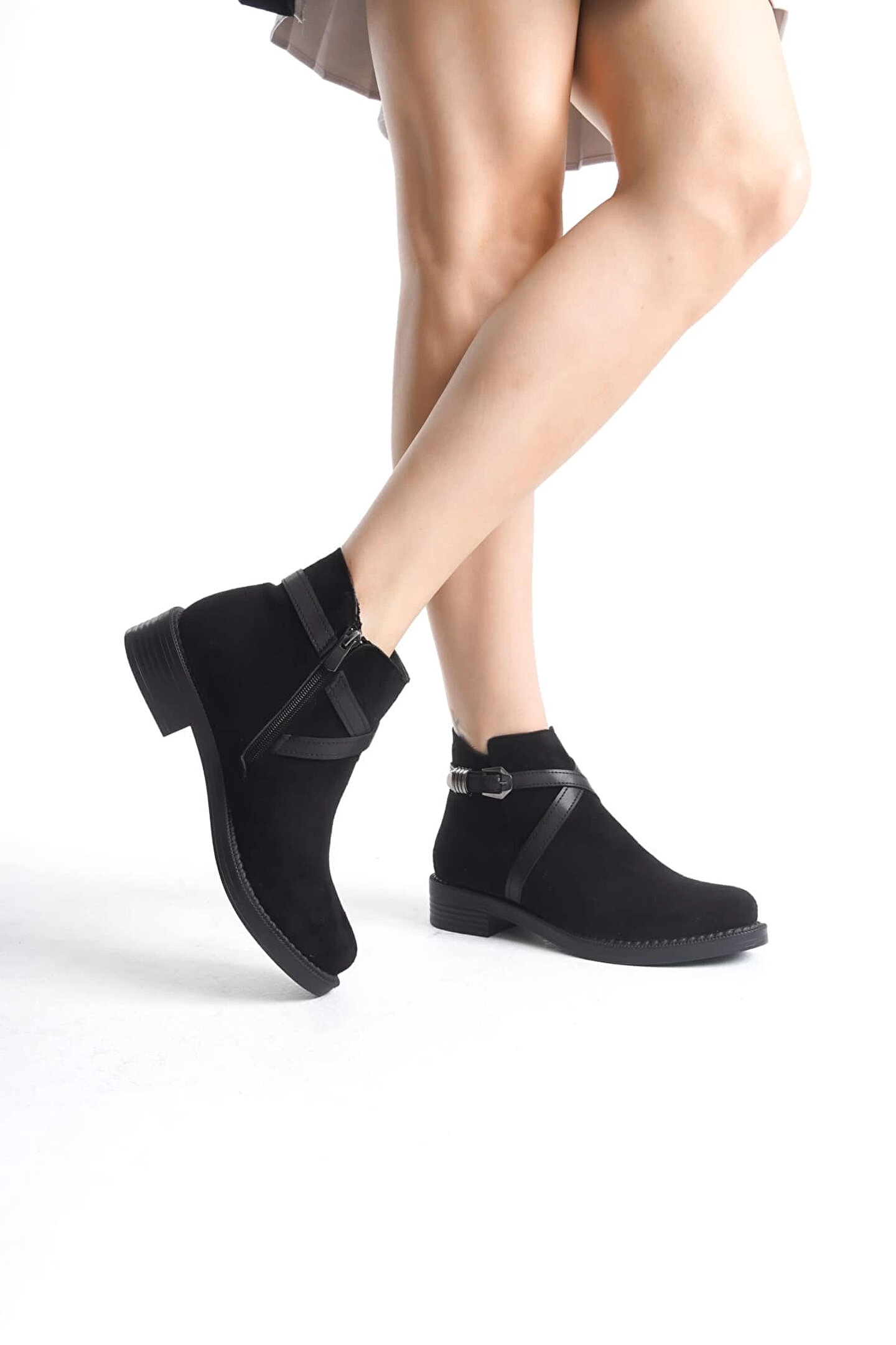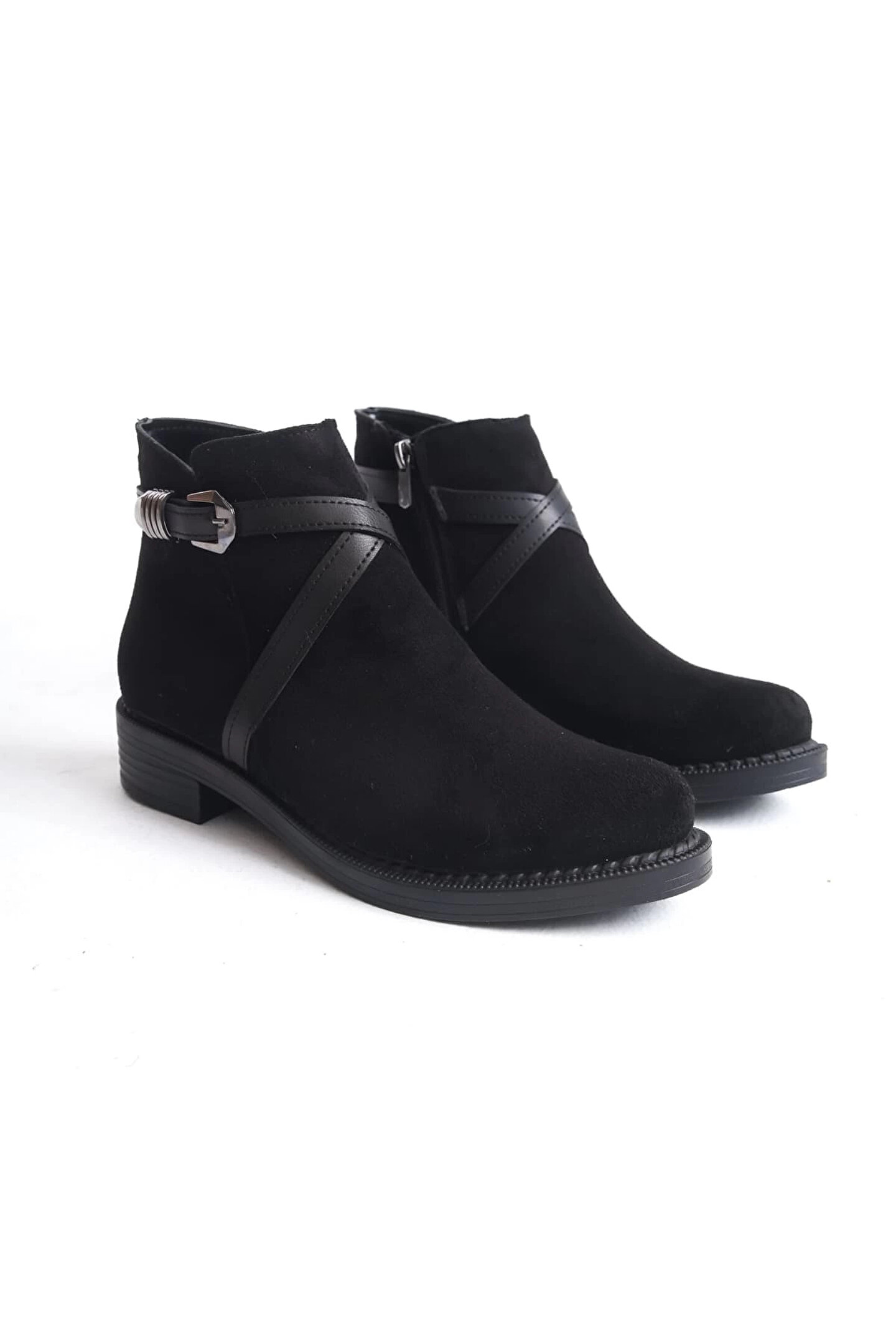 Joy Ayakkabı ALMILA Fermuarlı Lastikli Ortopedik Taban Topuklu Süet Kadın Bot SST - Siyah