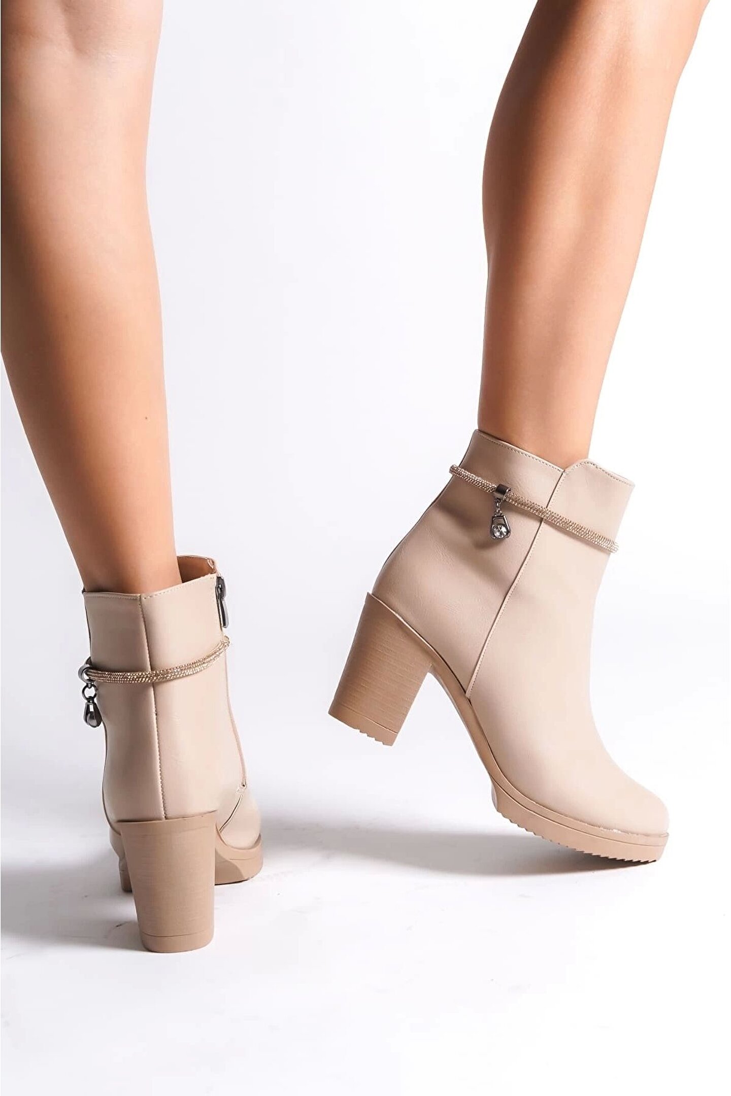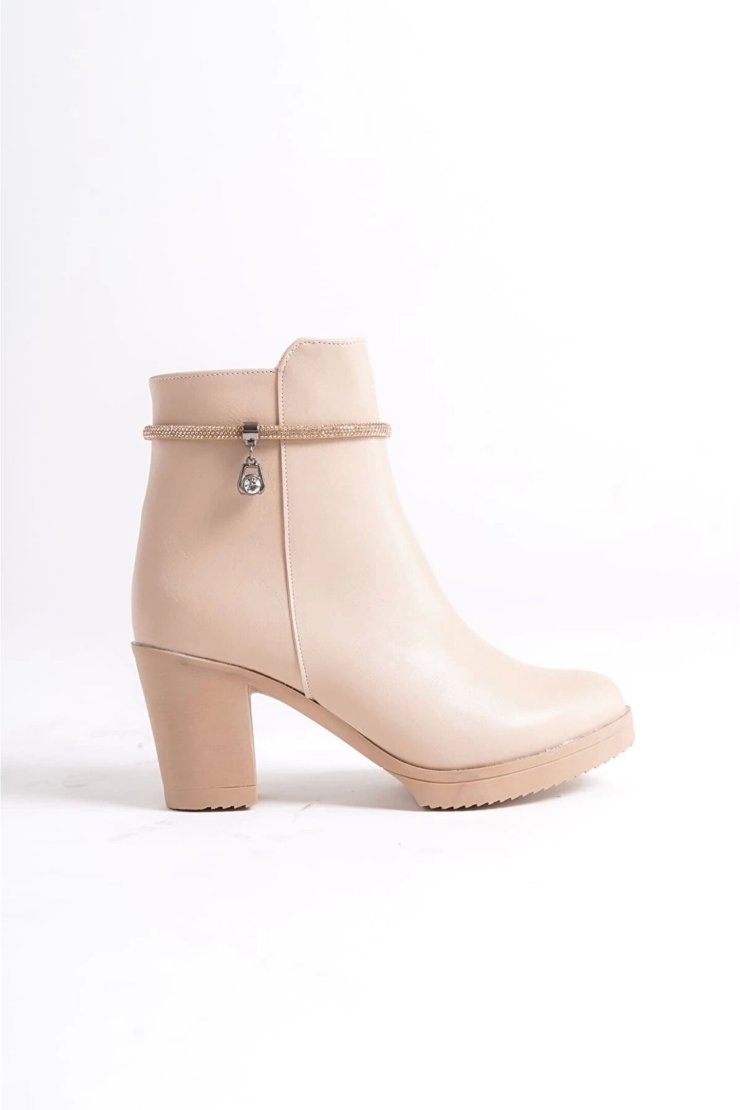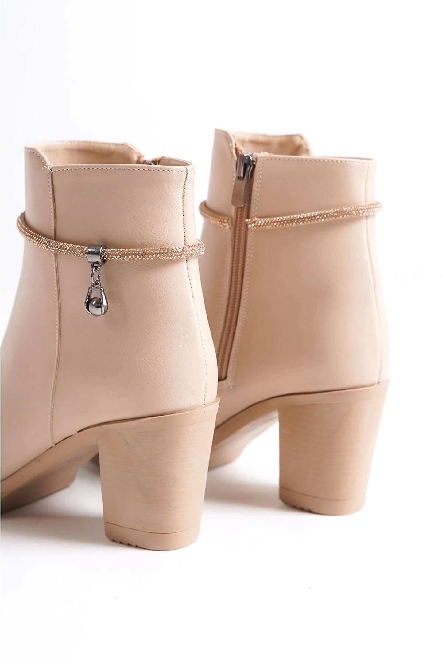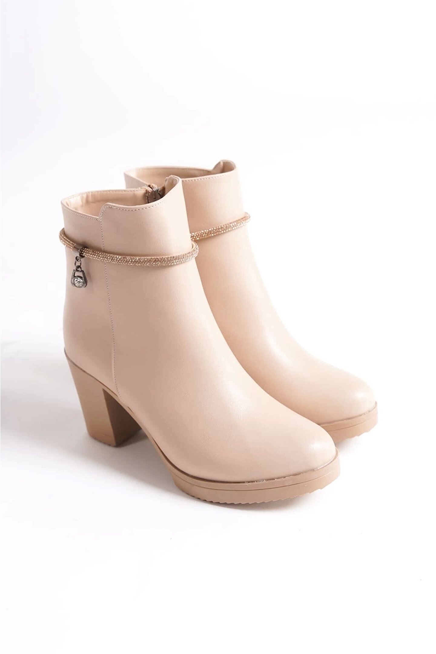 Joy Ayakkabı Arıa Fermuarlı Ortopedik Taban Taşlı Topuklu Kadın Bot Ctt - Ten