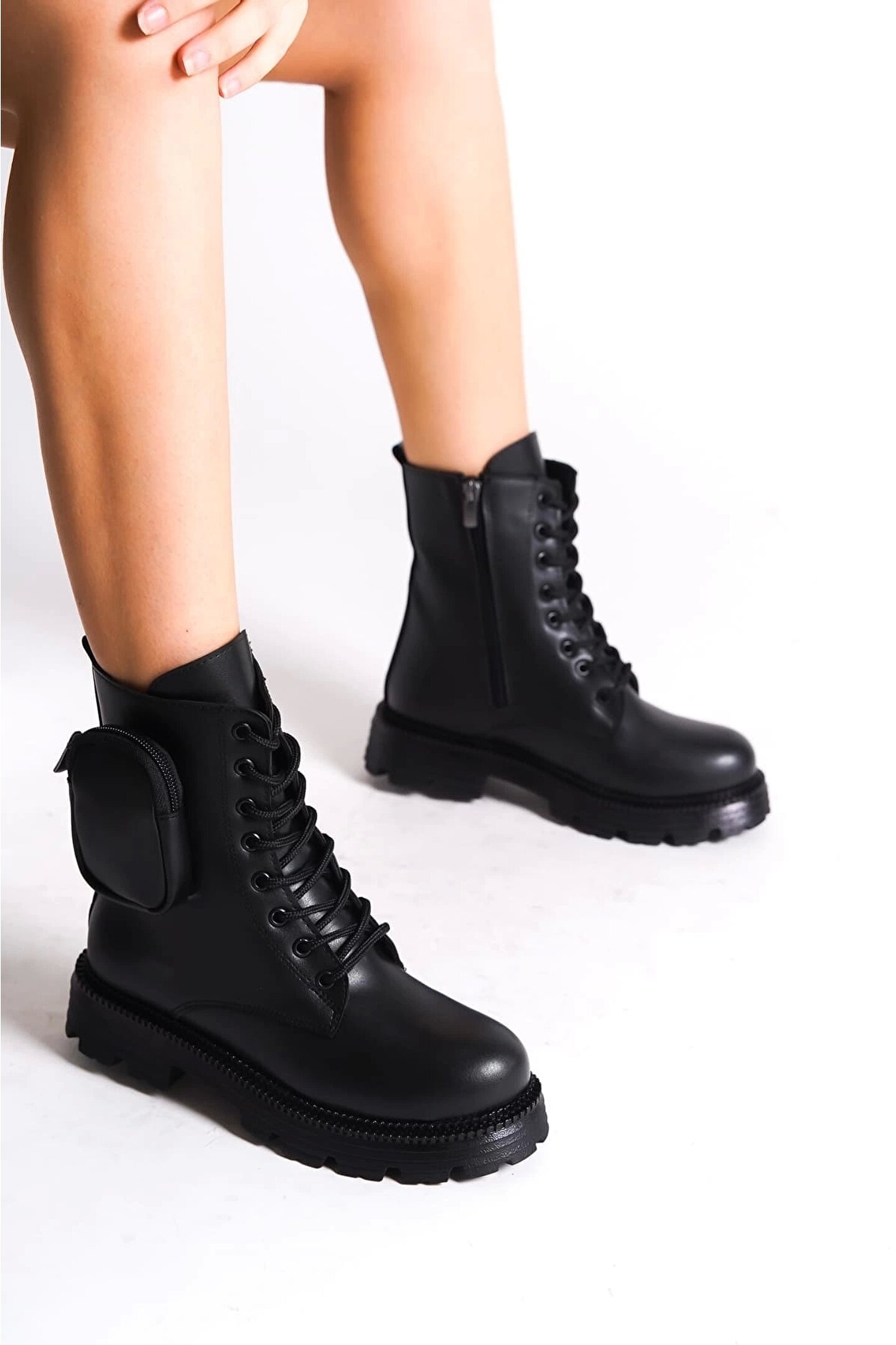 Joy Ayakkabı GINA Bağcıklı Fermuarlı Ortopedik Taban Çantalı Kadın Bot CST - Siyah