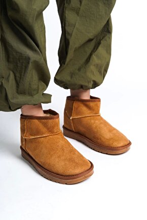 Joy Ayakkabı JOLIE Bağcıksız Düz Taban İçi Kürklü Kısa Süet Kadın Bot - Taba
