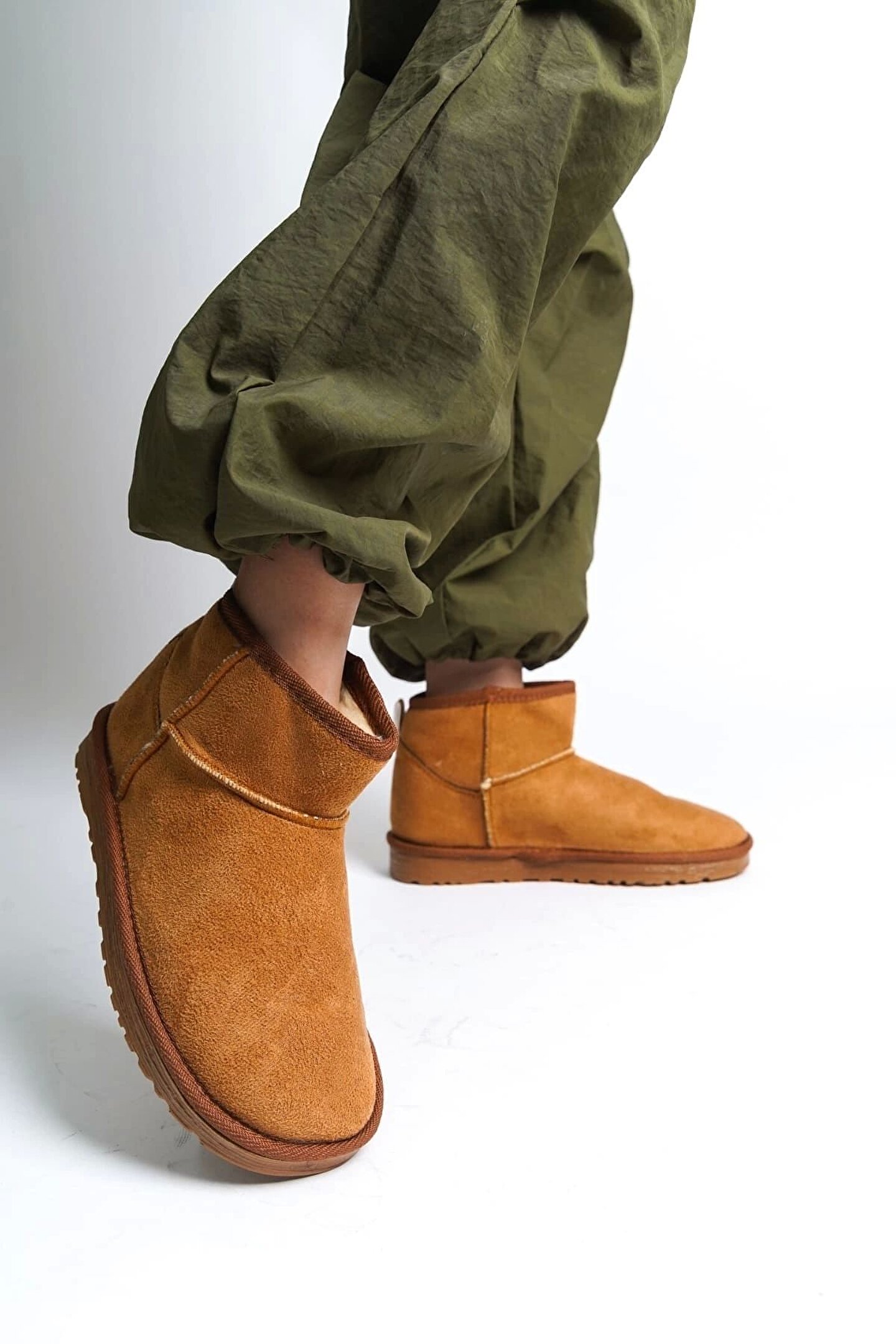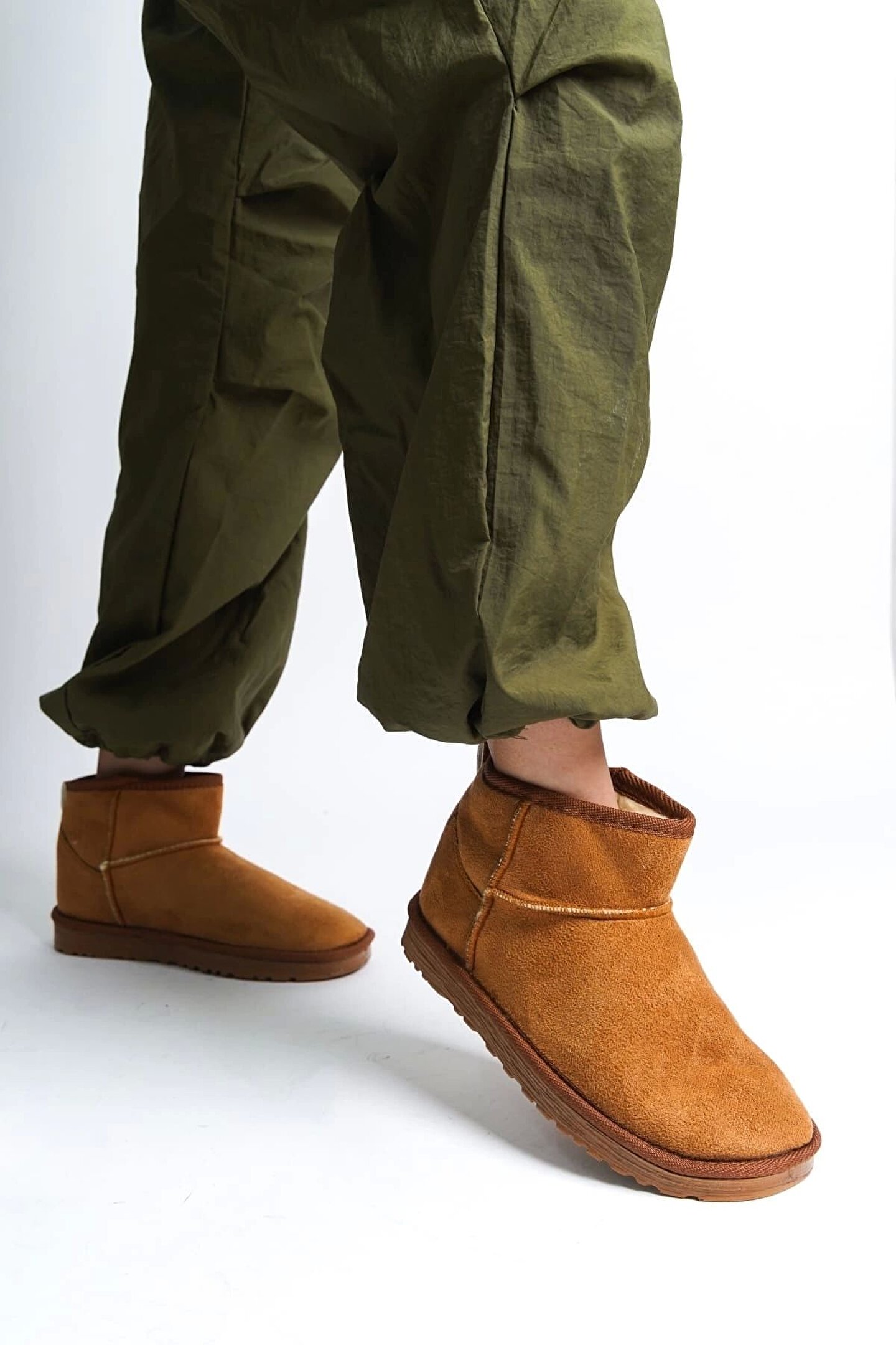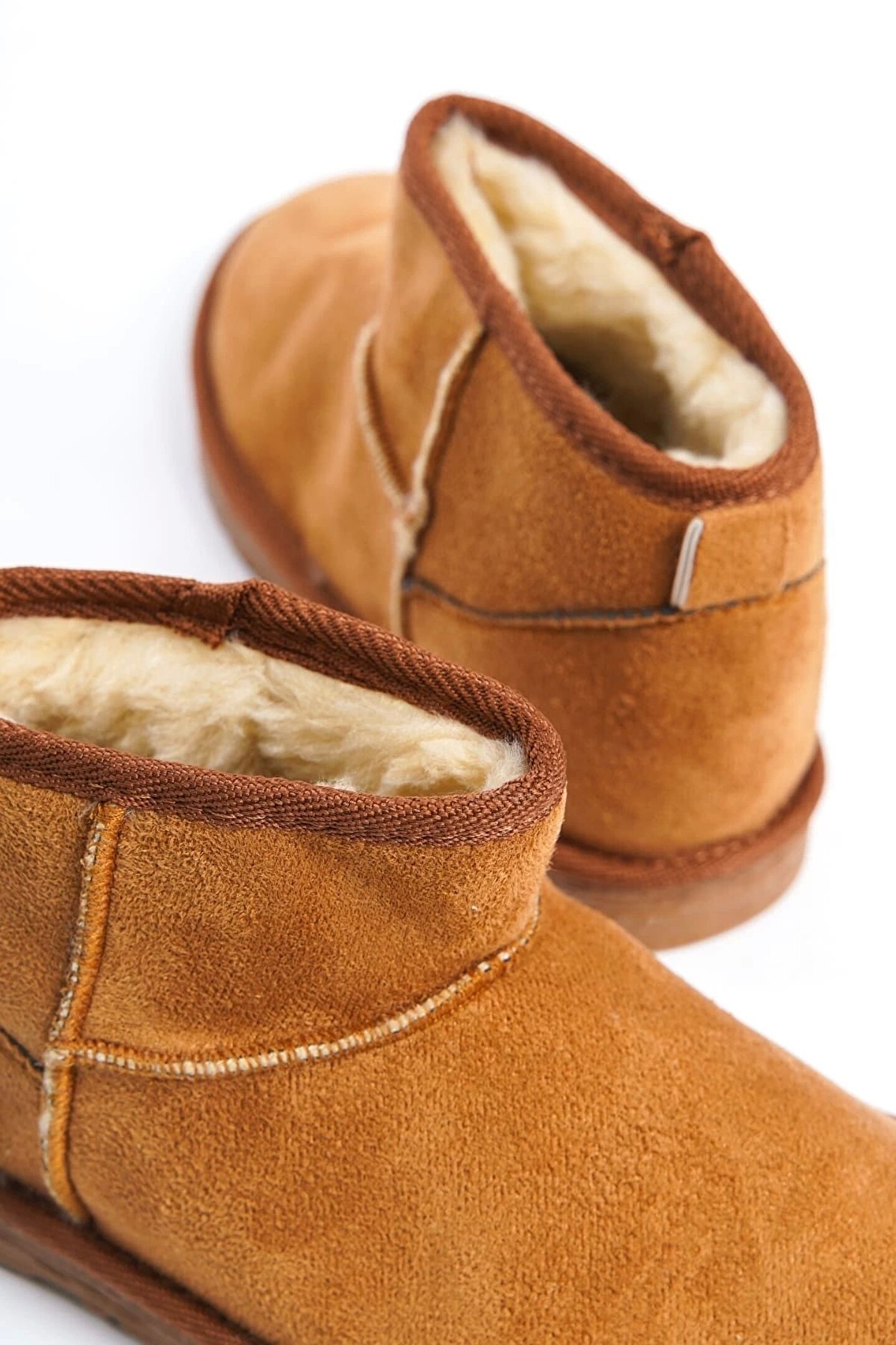 Joy Ayakkabı JOLIE Bağcıksız Düz Taban İçi Kürklü Kısa Süet Kadın Bot - Taba