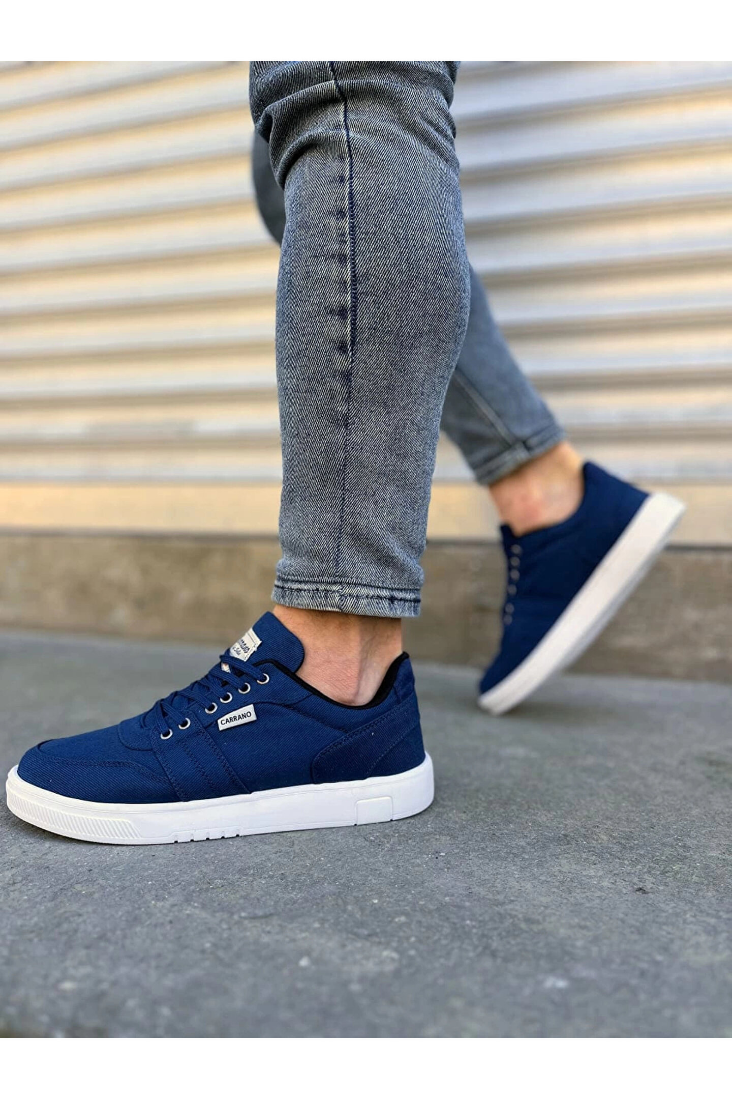 Joy Ayakkabı JY0118 REX Bağcıklı Keten Kumaş Erkek Günlük Sneaker Ayakkabı KBT - Lacivert