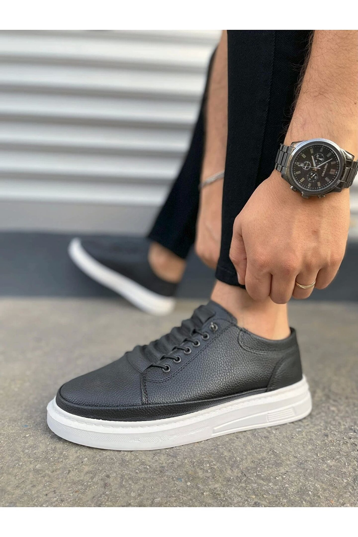 Joy Ayakkabı JY0535 Prime Bağcıklı Cilt Erkek Günlük Sneaker Ayakkabı CBT - Siyah