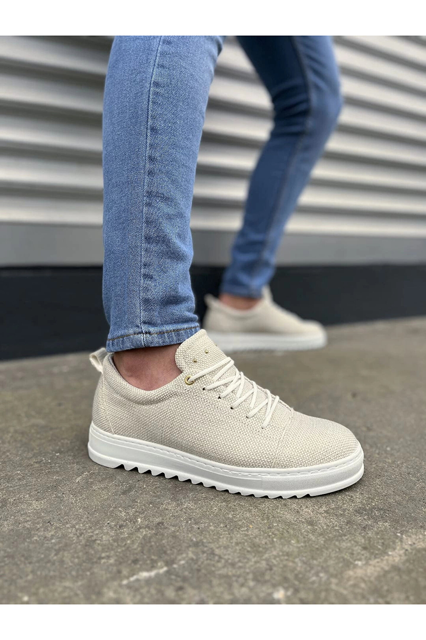 JY152 Cool Bağcıklı Keten Erkek Günlük Spor Klasik Ayakkabı KBT - Beyaz
