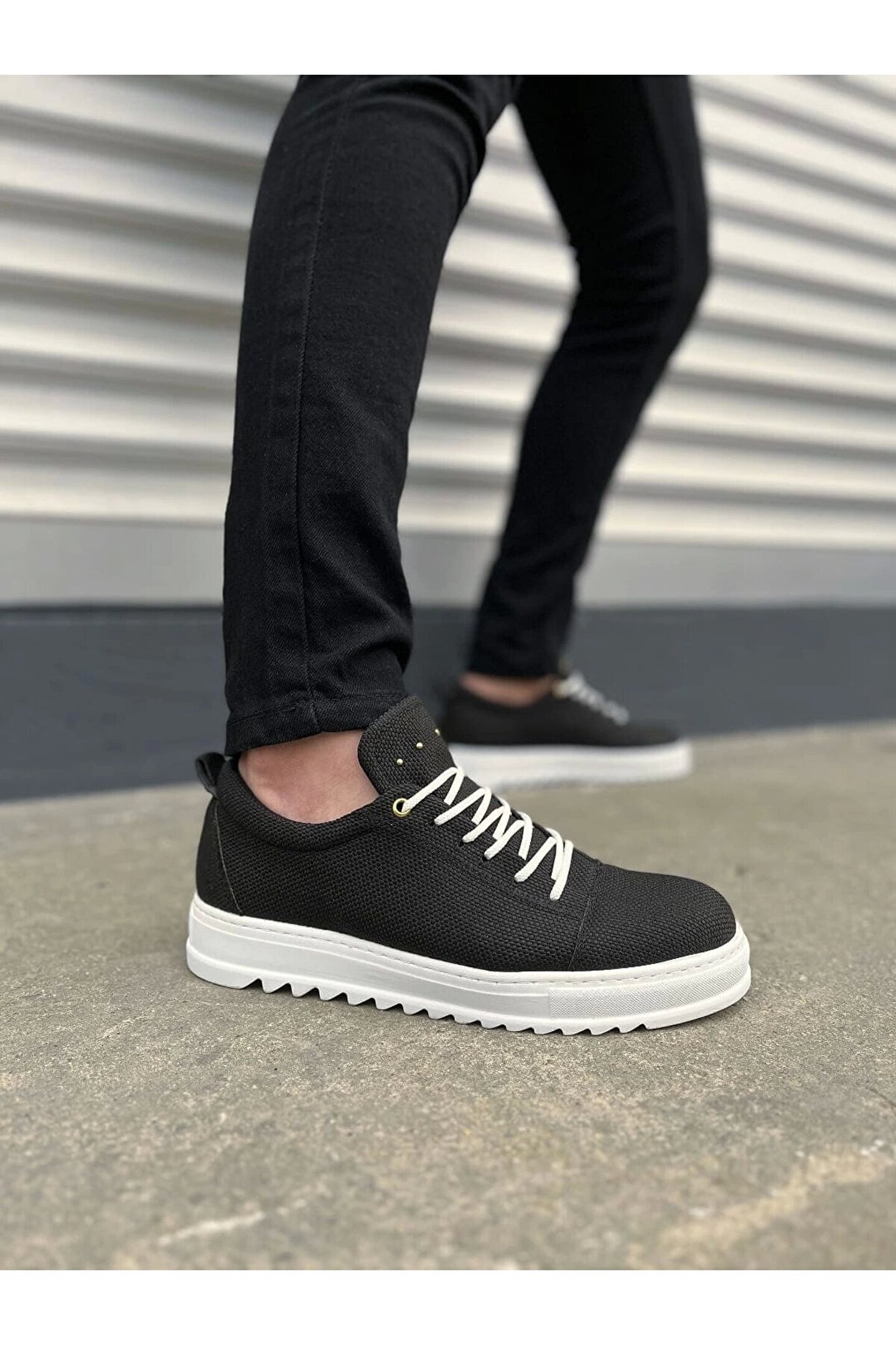 JY152 Cool Bağcıklı Keten Erkek Günlük Spor Klasik Ayakkabı KBT - Siyah