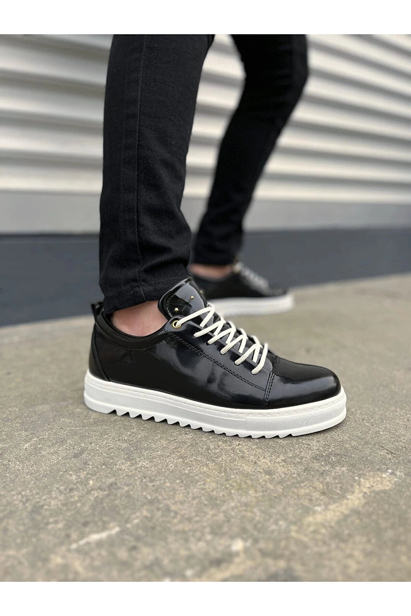 JY152 Cool Bağcıklı Rugan Erkek Günlük Spor Klasik Ayakkabı RBT - Siyah