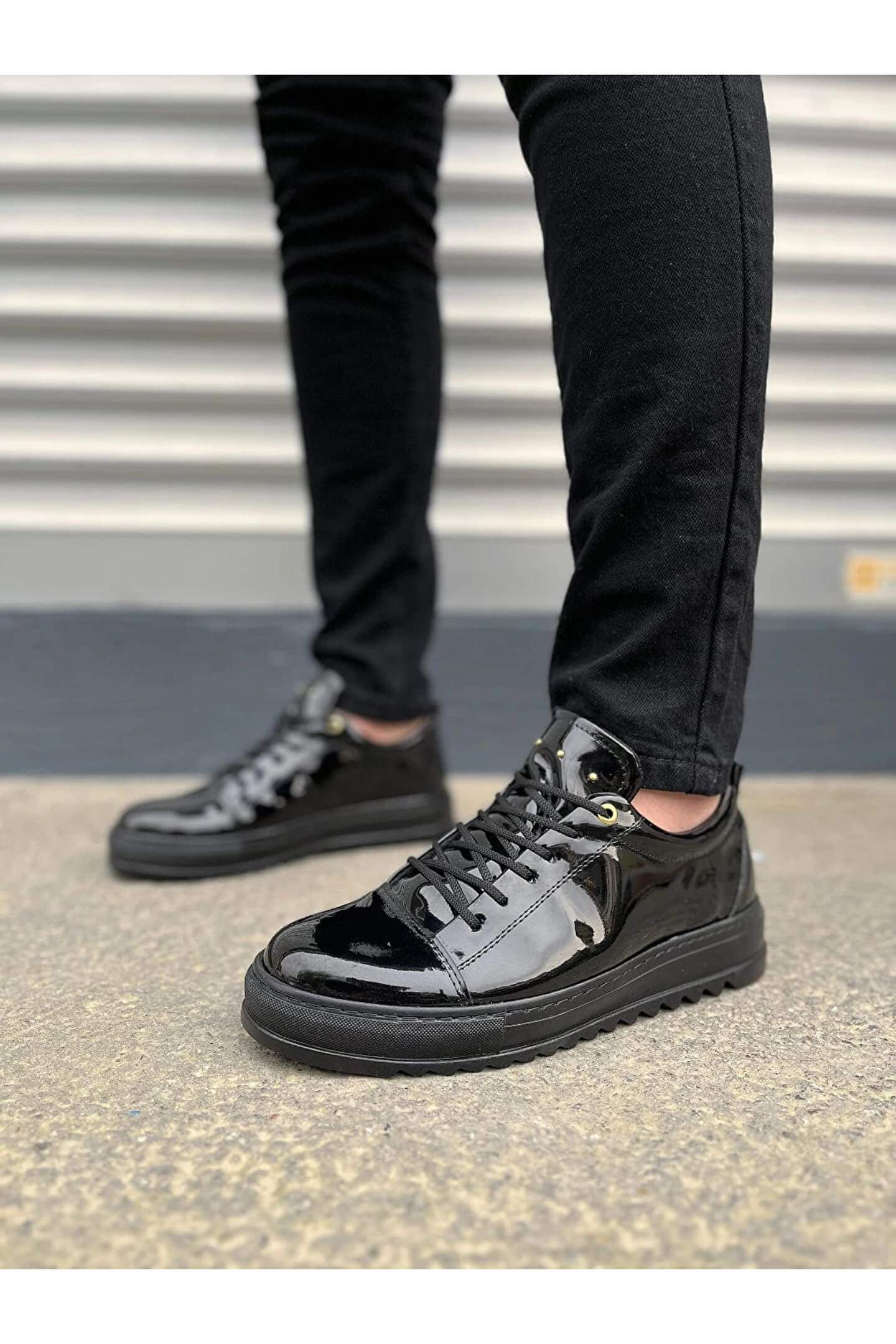 Joy Ayakkabı JY152 Cool Bağcıklı Rugan Erkek Günlük Spor Klasik Ayakkabı RST - Siyah