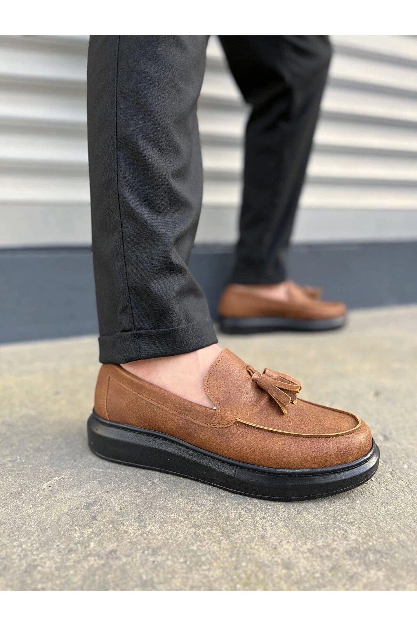 JY154 Blaze Bağcıksız Püsküllü Cilt Erkek Günlük Spor Klasik Ayakkabı CST - Taba