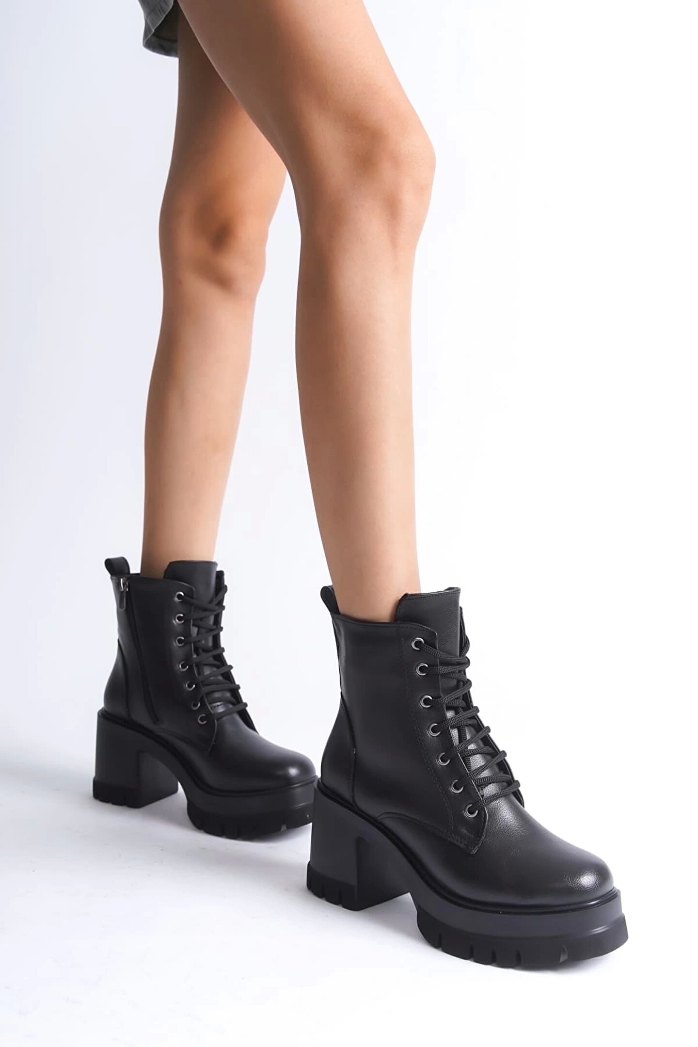 Joy Ayakkabı LAUREN Bağcıklı Fermuarlı Ortopedik Taban TopukluKadın Bot ST - Siyah