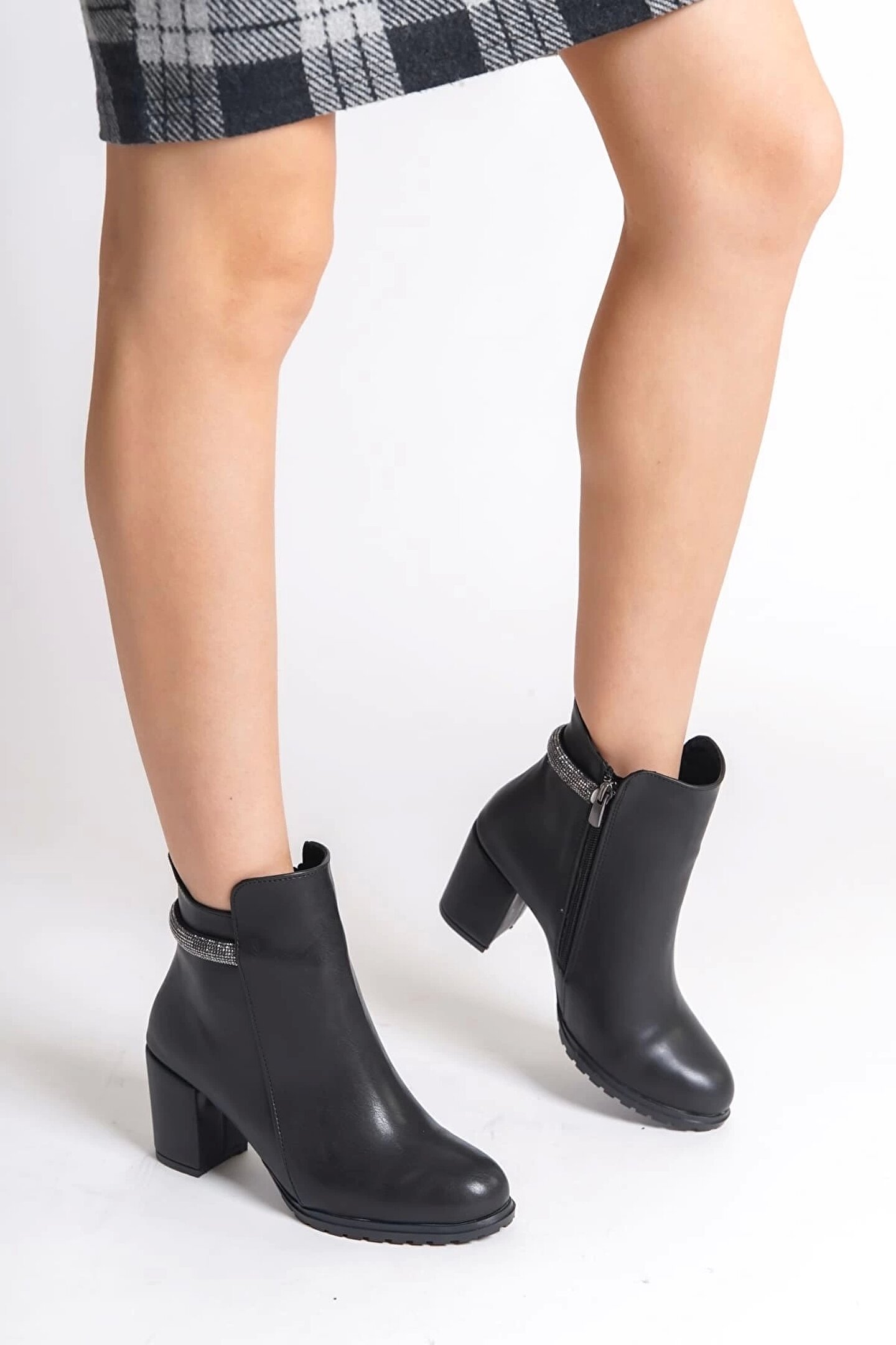 Joy Ayakkabı Lıa Fermuarlı Ortopedik Taban Taşlı Topuklu Kadın Bot Cst - Siyah