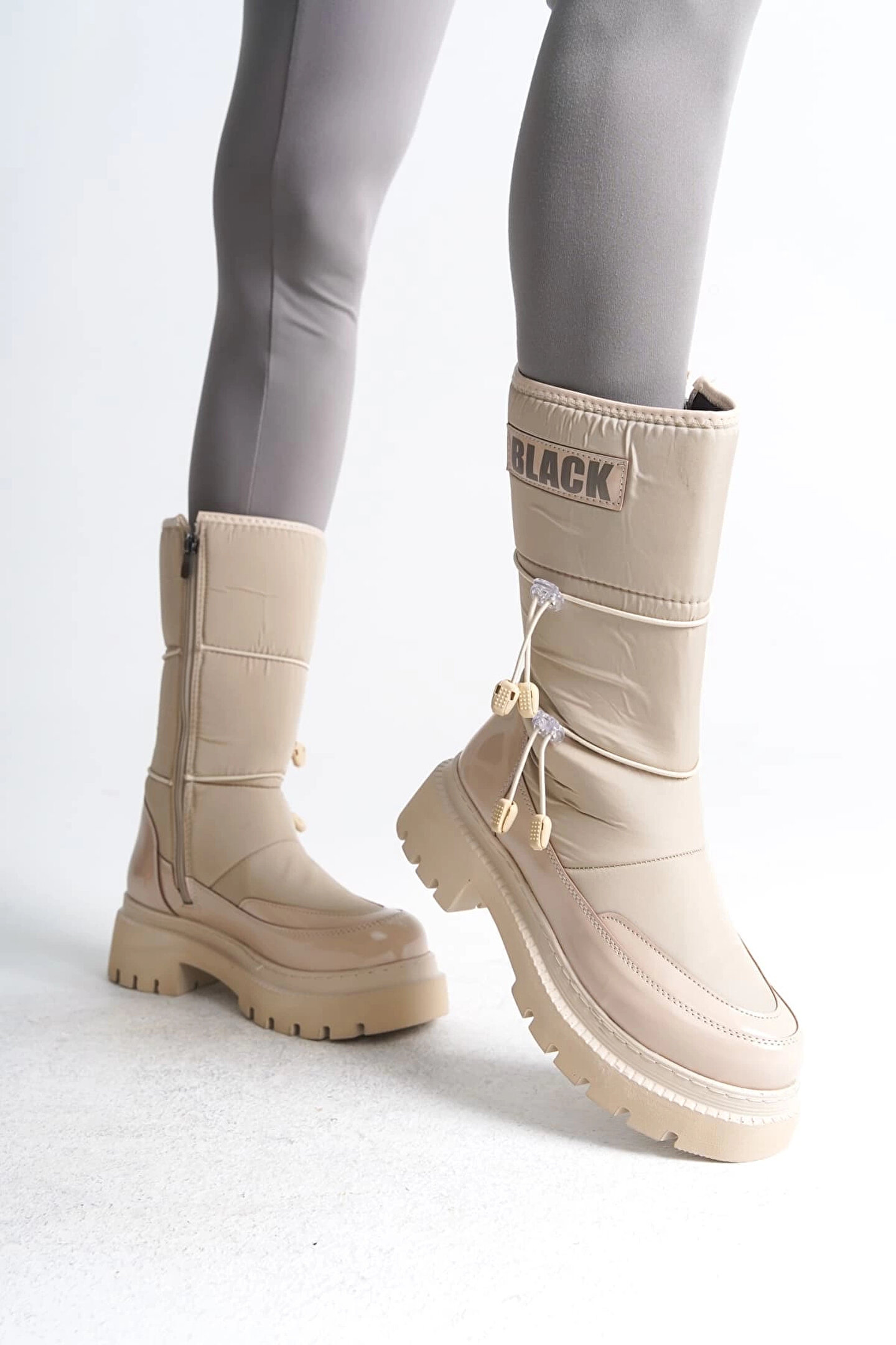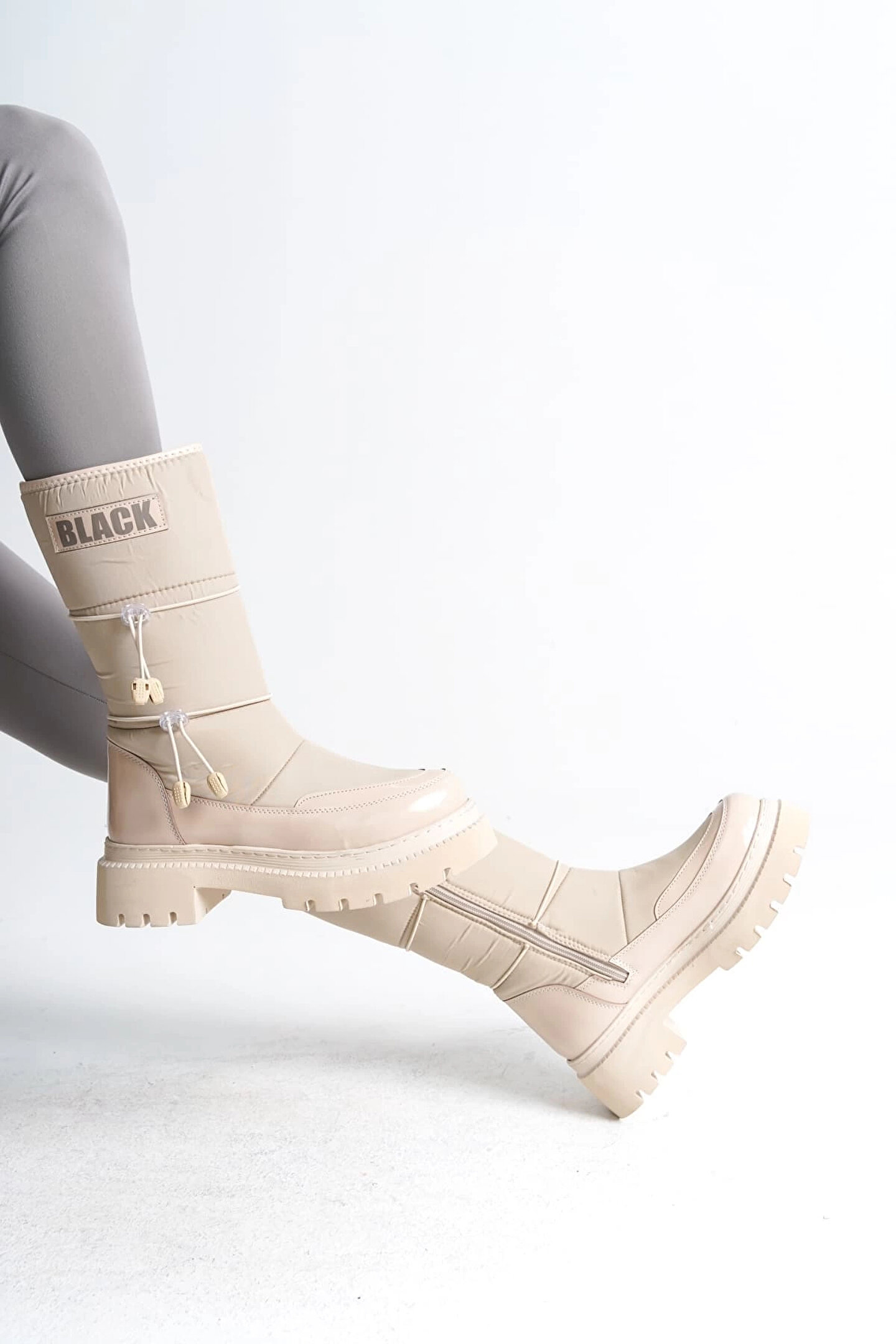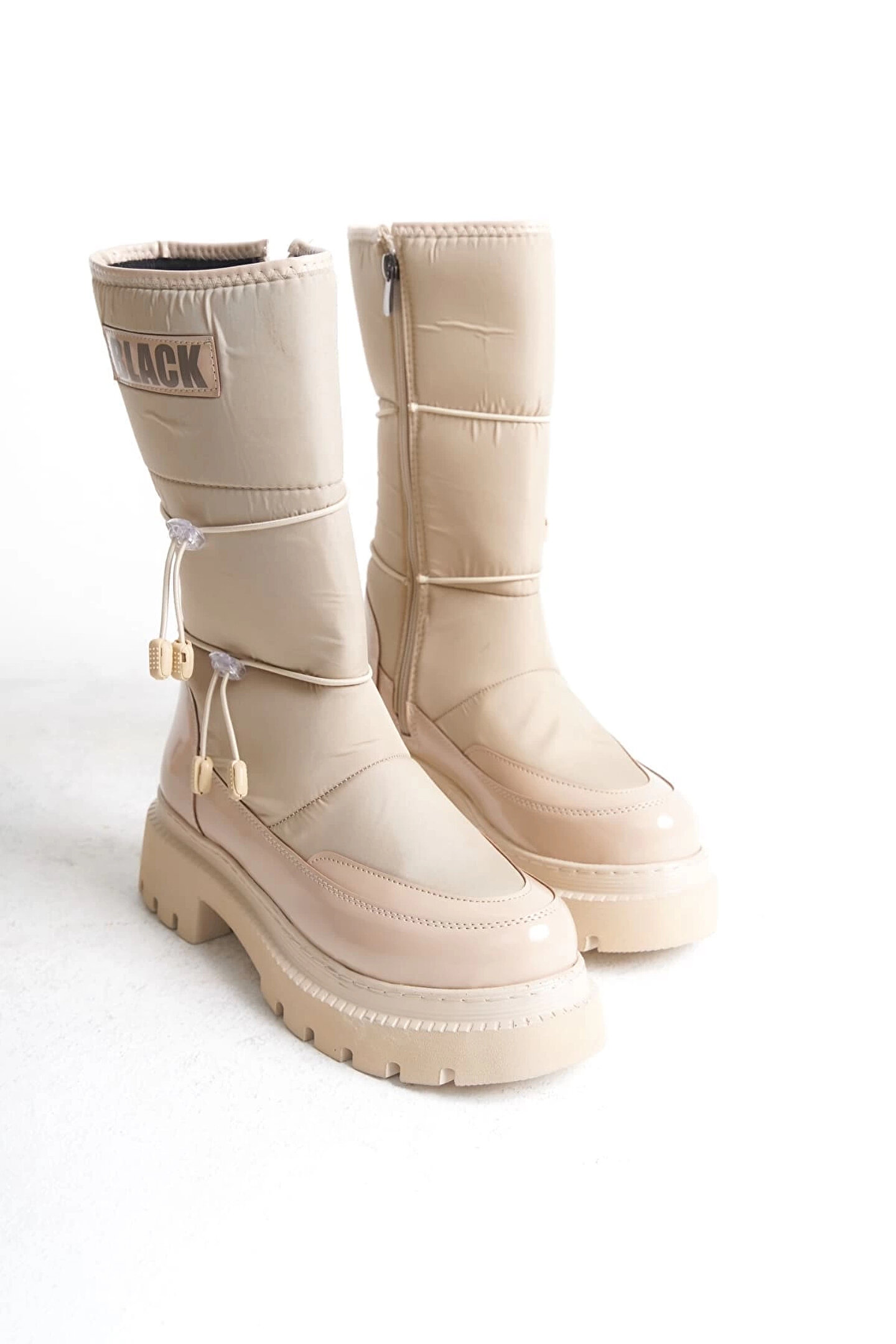 Joy Ayakkabı LUCY Lastikli Fermuarlı Paraşüt Kumaş Rugan Kadın Bot CKT - Krem