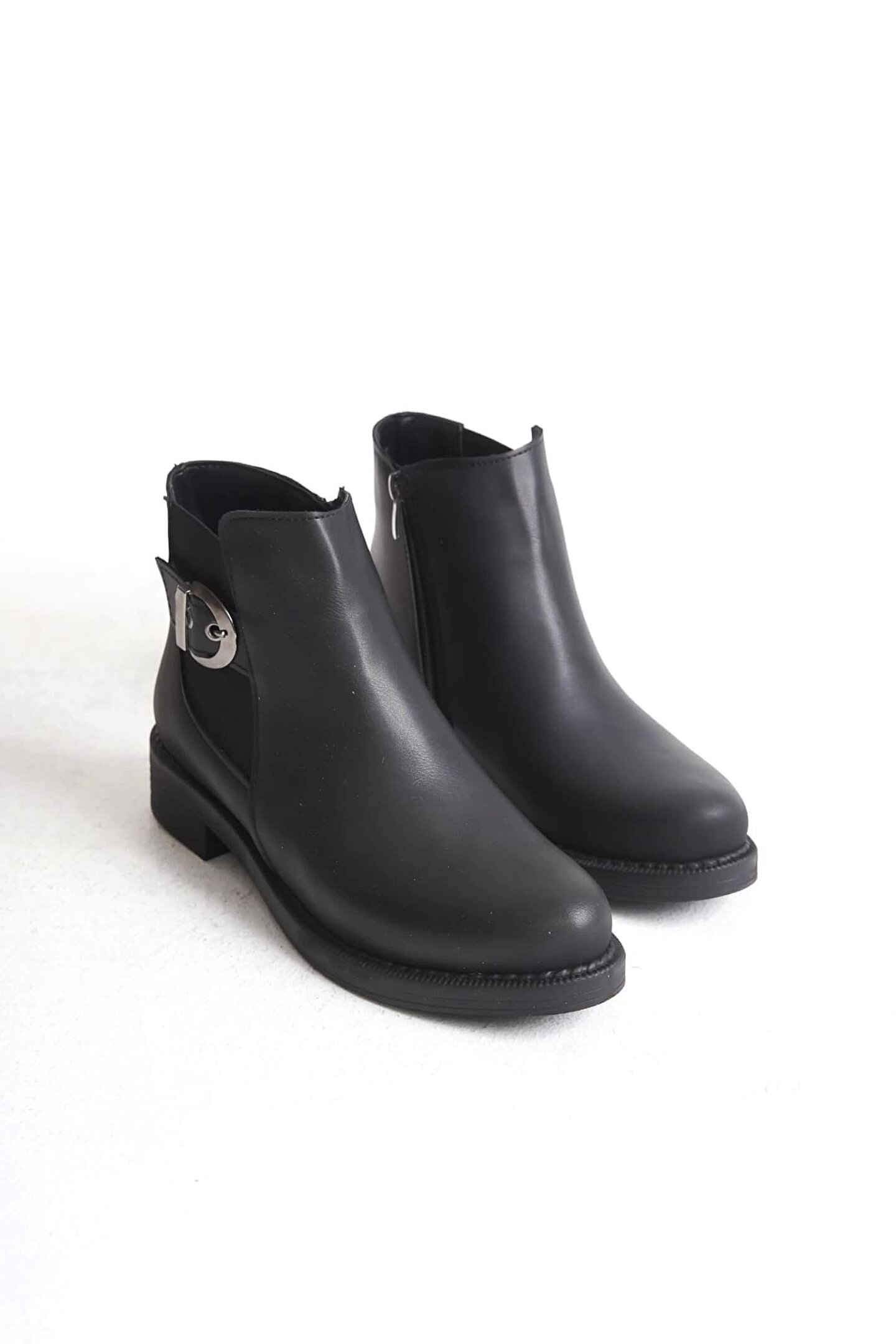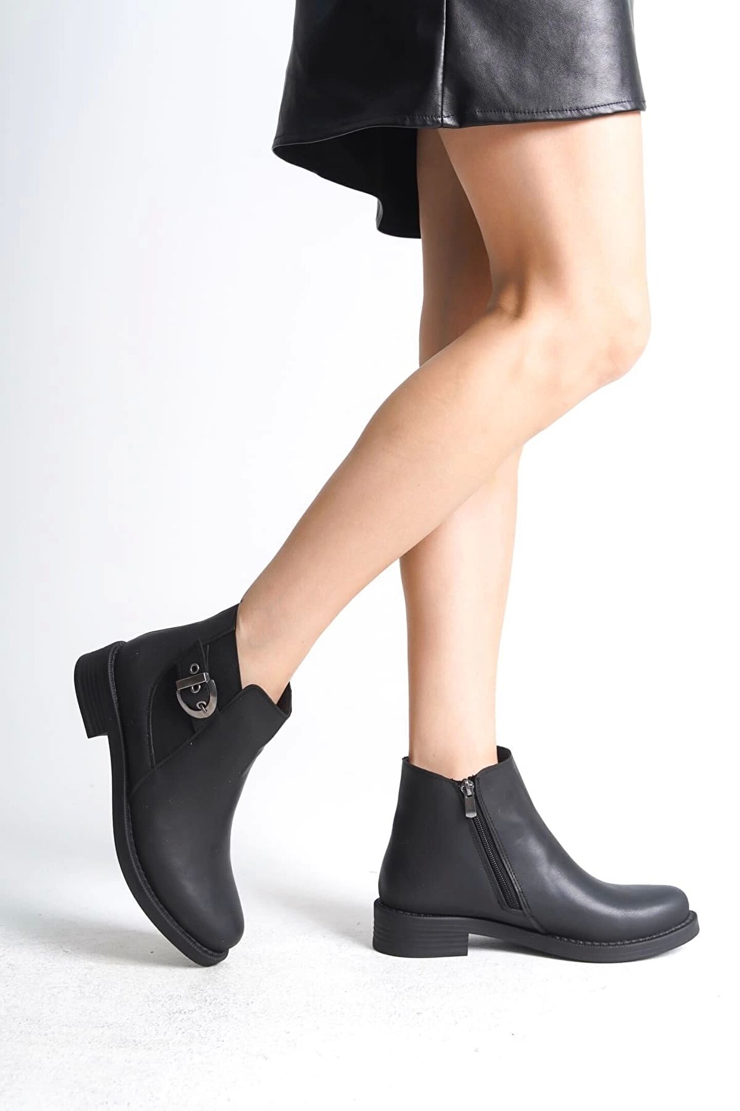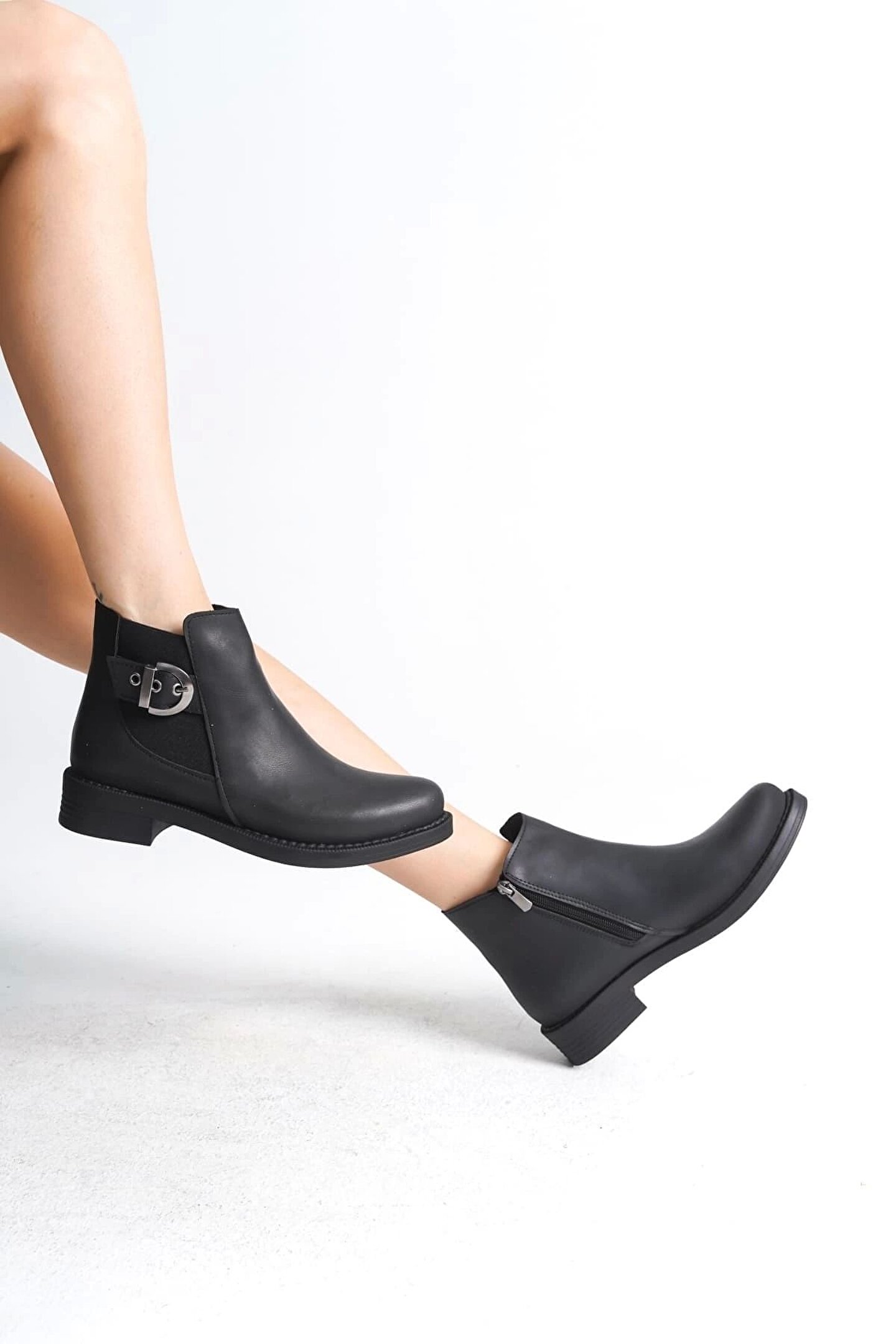 Joy Ayakkabı LUNA Fermuarlı Lastikli Ortopedik Taban TopukluKadın Bot ST - Siyah