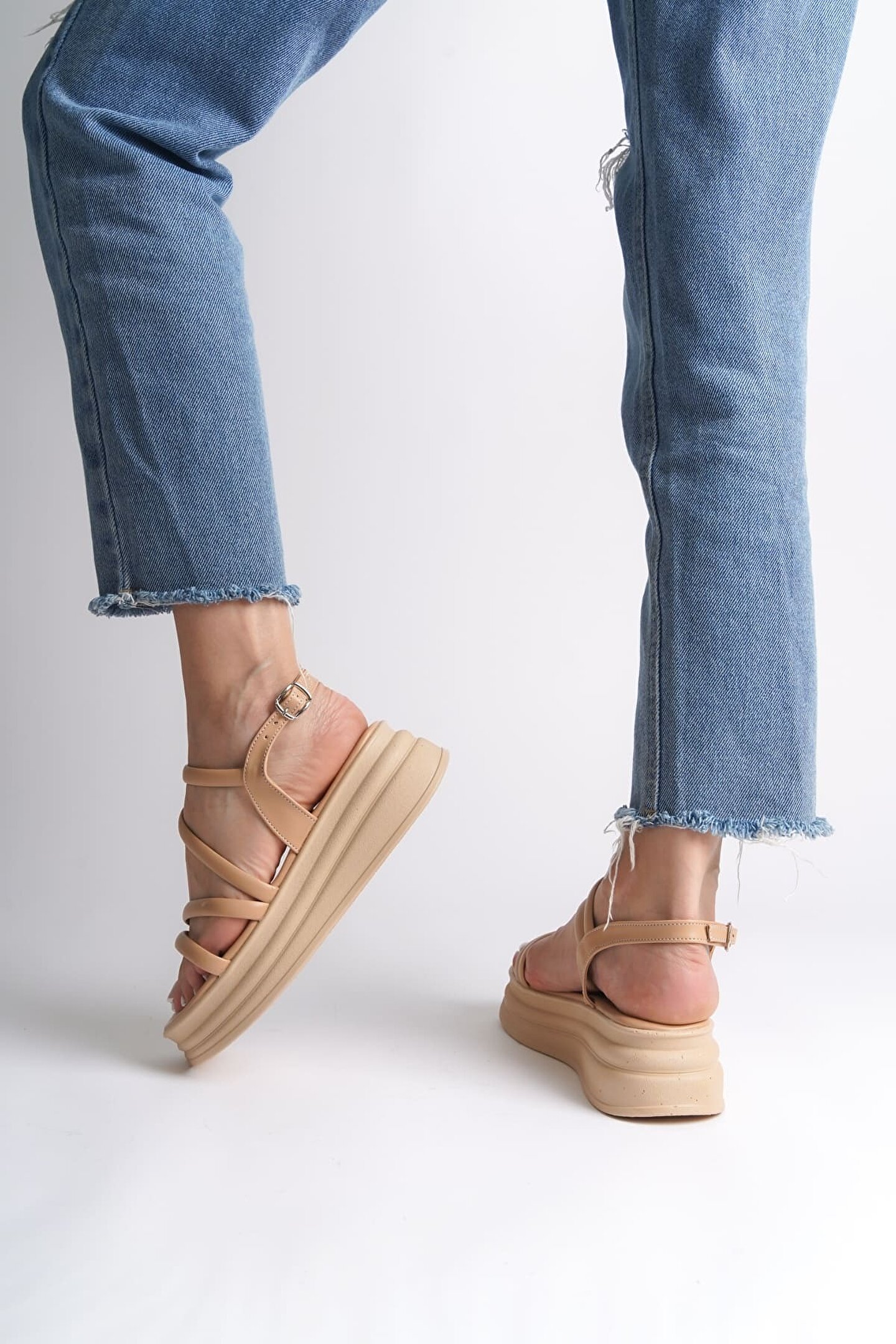 Joy Ayakkabı NATALIE İnce Tokalı Şerit Detaylı Ortopedik Taban Kadın Sandalet CTT - Ten