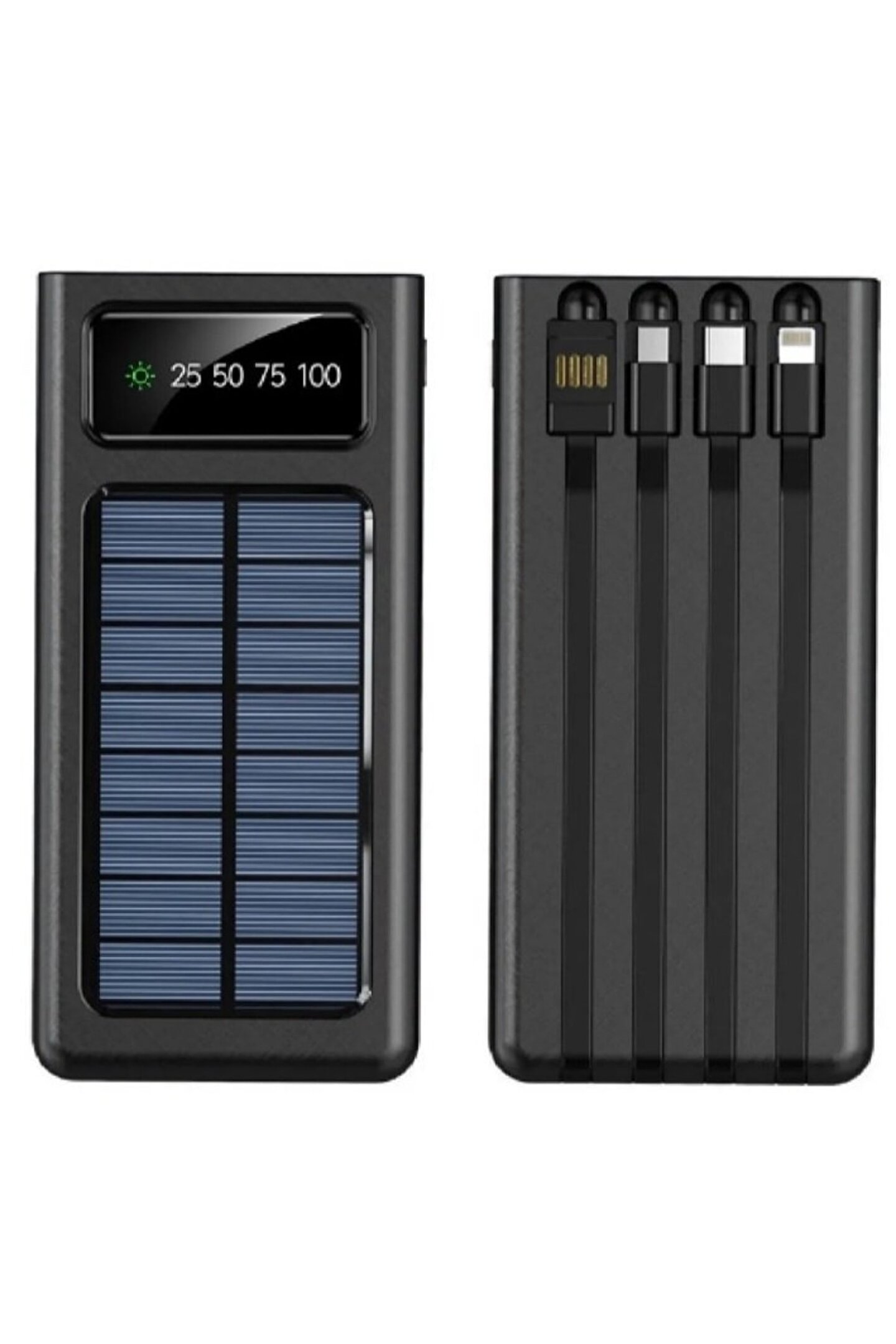 JUNGLEE 10000 Mah Güneş Enerjili Powerbank Ios Android Uyum Lcd Ekranlı 4 Kablo Type C Mikro Usb Lightning