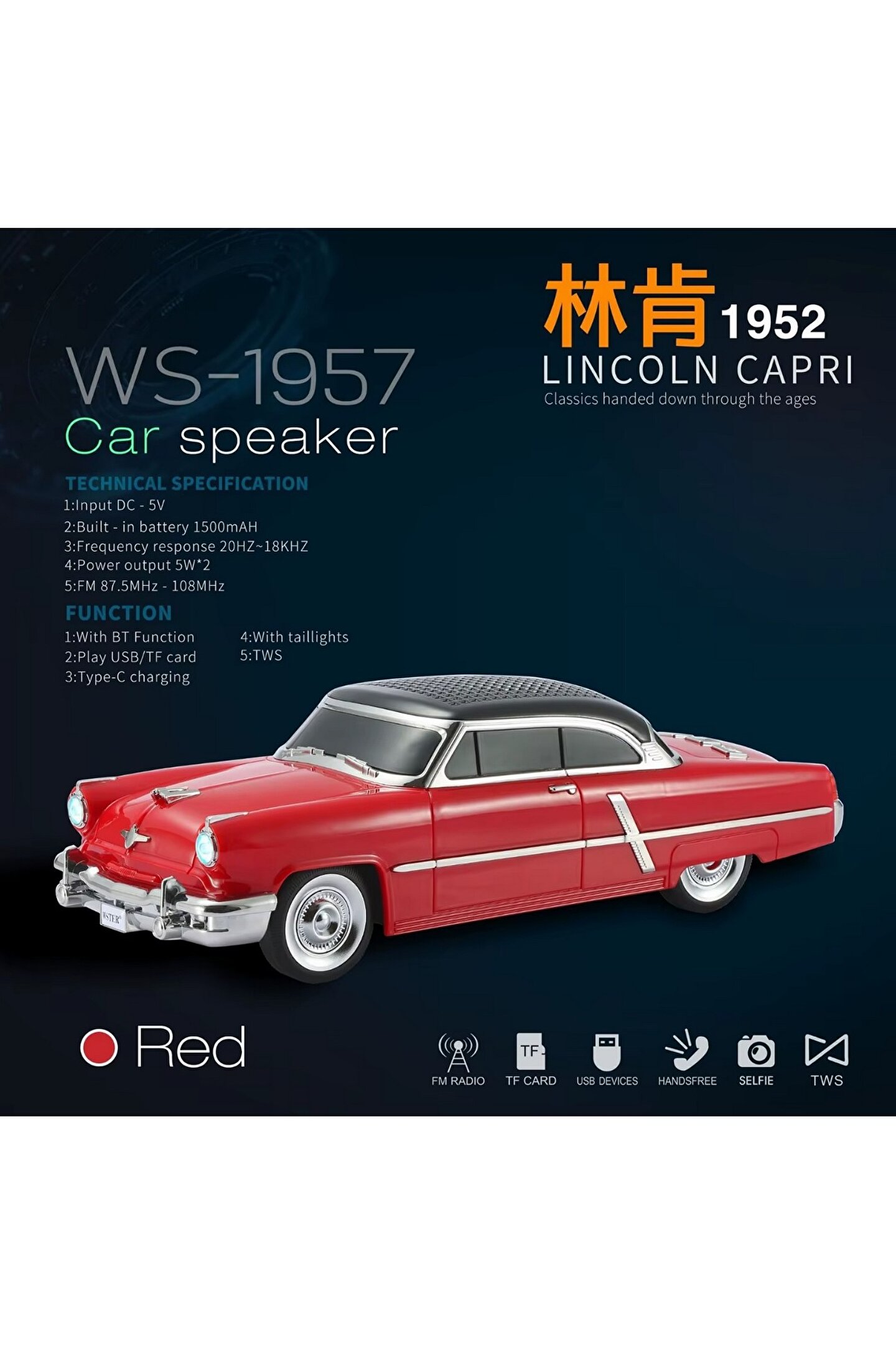 | Model No. | WS-1957 kablosuz araba modeli hoparlör |