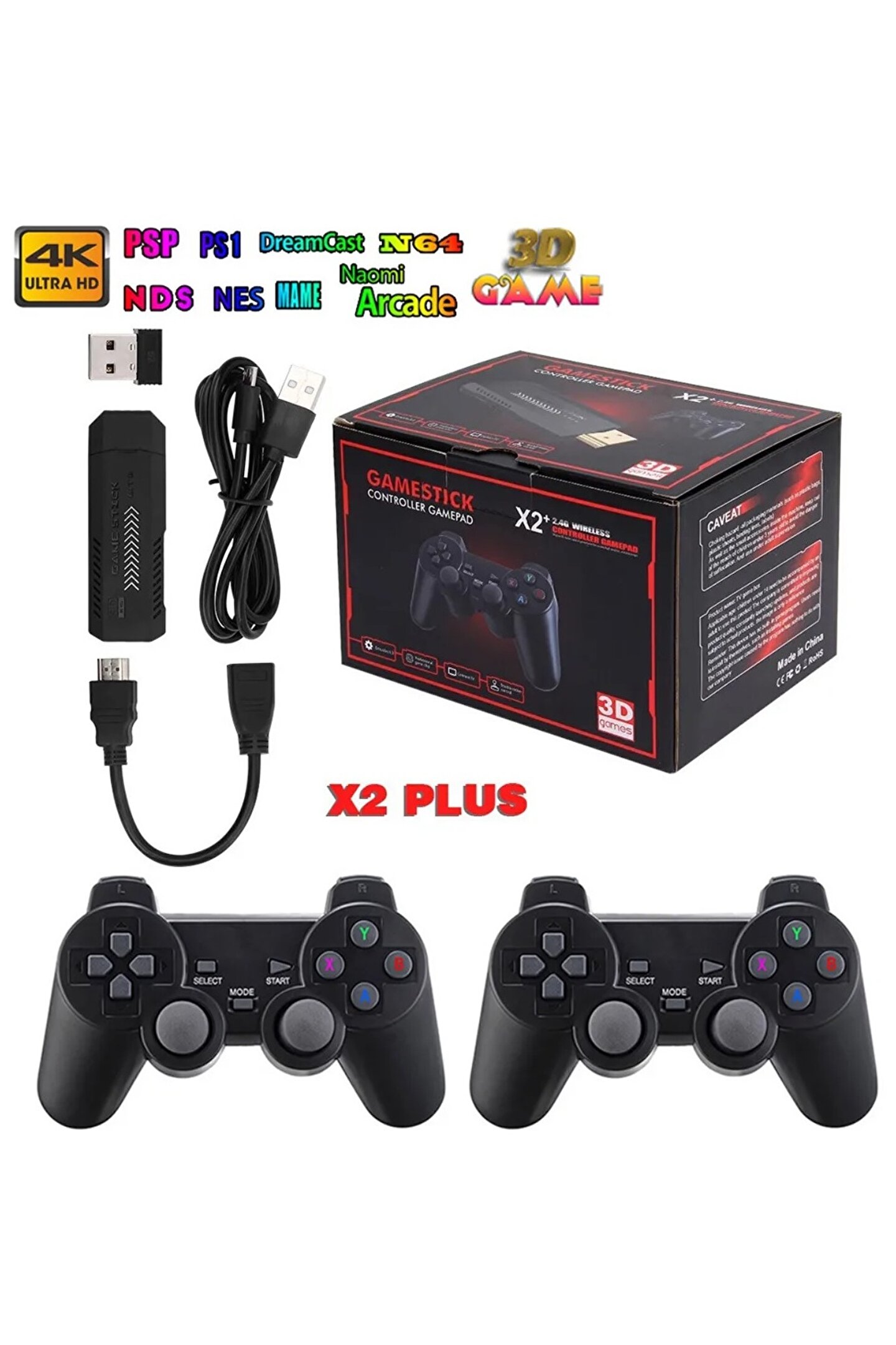 Temel Özellikler: Kapsamlı Oyun Kütüphanesi:Binlerce klasik oyun, çeşitli türleri ve çağları kapsayan önceden yüklendi.; Çift kablosuz denetleyiciler:Ergonomik olarak, iki oyunculu aksiyona izin veren rahat ve duyarlı oyun için tasarlanmıştır.; 4K HDMI çıkışı:Çarpıcı görseller ve sürükleyici bir oyun deneyimi için TV'nize bağlanın.; Taşınabilir Tasarım:Hafif ve kompakt, oyununuzu hareket halindeyken almanızı kolaylaştırır.; Kullanımı kolay:Sezgisel bir arayüze sahip basit tak ve oynatma kurulumu.; İçin mükemmel: Evde Eğlence:Aileyi toplayın ve birlikte klasik oyunlar oynayarak saatlerce eğlenin.; Seyahat:Parmak ucunuzda geniş bir oyun kütüphanesi ile uzun yolculuklarda kendinizi eğlendirin.; Retro oyun meraklıları:Klasik oyunların nostaljisini otantik oyunla yeniden yaşayın.; Bu hepsi bir arada oyun çözümü, tüm aile için sonsuz eğlence sunar.; Şimdi sepete ekleyin ve retro oyun maceranıza başlayın! X2 Plus Video Oyun Konsolu * 37000 oyun ile 64G versiyonu.; Tek paket 0.35kg, Ambalaj Boyutu: 16cm * 11.5cm * 10.5cm, Bir Karton Kutusu 40pcs, Spesifikasyon Boyutu: 62 * 35 * 45cm, brüt ağırlık 15.8kg * Sistem: Emuelec 4.3 * Daha büyük 3D oyunları destekleyin.; * Fonksiyon: Arama işlevi, toplama işlevi, oyun ilerleme tasarrufu işlevi ile * HD Çıktı Desteği HD 4K, * Kablosuz Denetleyici: 2.4G Kablosuz Denetleyici Desteği 1-2 Oyuncu, Kablonun sınırlamasından kurtulun ve serbestçe oynatın * Destek 40+ Simülatör: PSP/PS1/N64/CP1/CP2/CP3/Neogeo/GBX/Mame/FC/FCE/SFC/GB/GBA/GBC/MDNGPC/MegmeGear/Segagenez/SG-1000 Diğer simülatörler.; (Amiga Arcade Atari800 ATARI2600 ATARI5200 ATARI7800 ATLOLYNX Atarist Atomiswave C64 COLECO DRENEO FDS GAMEANDWATCH GAMEGAR GB GBA GBC Genesis Mastersystem MegS INECD Pokemini PSP PSX SEGA32 SG1000 SGFX SNES VECTEX Virtualboy Zxspectrum) Paket Listesi: 1 x 4K oyun çubuğu 2 x 2.4g kablosuz denetleyici 1 x USB kablosuz alıcı 1 x HD kablo 1 x TF kartı (Gamestick'e koyun) 1 x USB güç kablosu 1 x Kullanım Kılavuzu