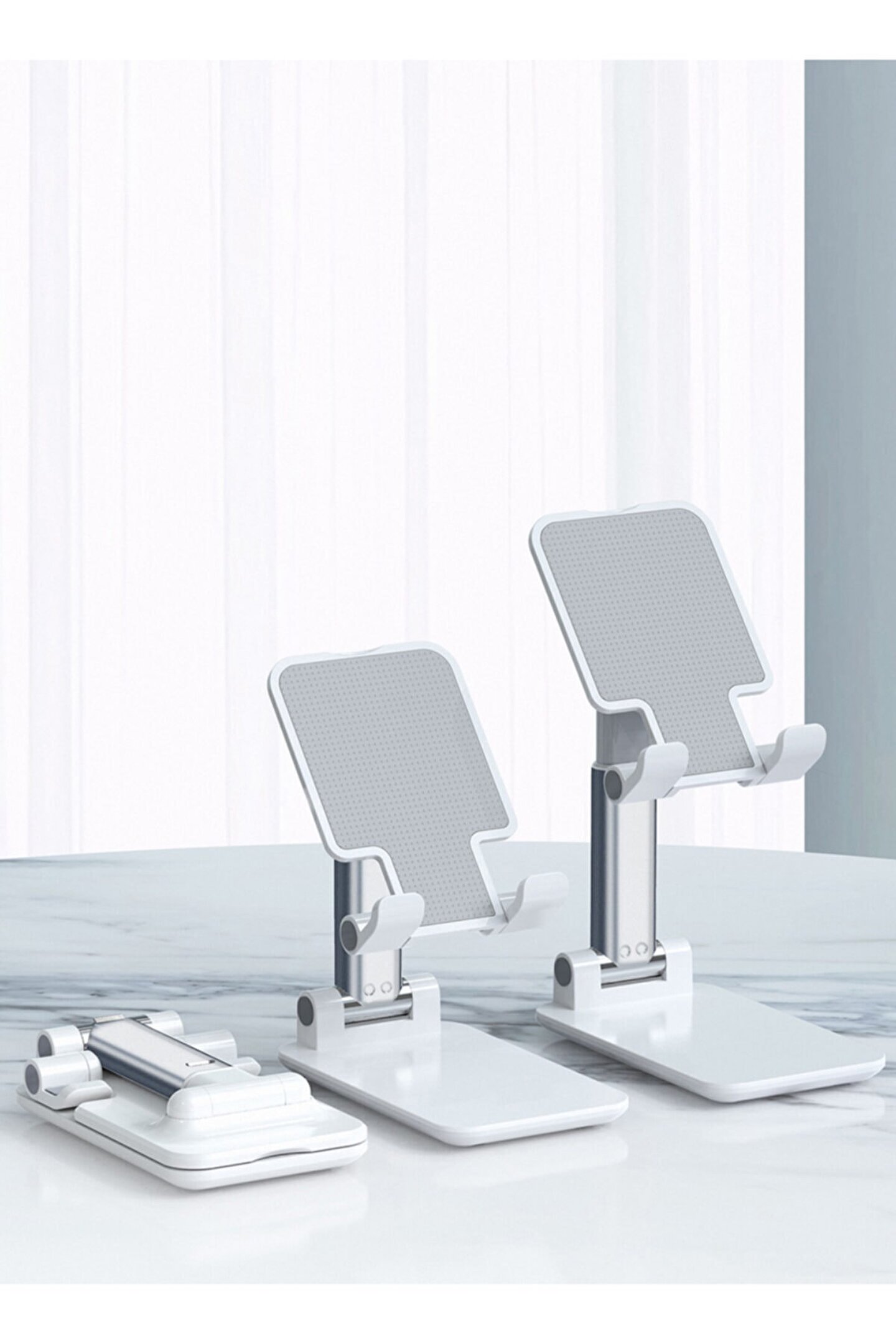 Katlanabilir tasarımı sayesinde, kullanılmadığı zamanlarda yer kaplamayan ve kolayca saklanabilen bir yapıya sahiptir; Beyaz ve gümüş renk seçenekleriyle şık ve modern bir görünüm sunar, araç içi dekorasyonunuza estetik bir dokunuş katar; Plastik materyali ile hafif ve dayanıklıdır, uzun süreli kullanım için idealdir; Masaüstü tablet ve telefon tutucu olarak tasarlanmıştır, böylece yolculuk sırasında cihazlarınızı rahatça kullanabilirsiniz;