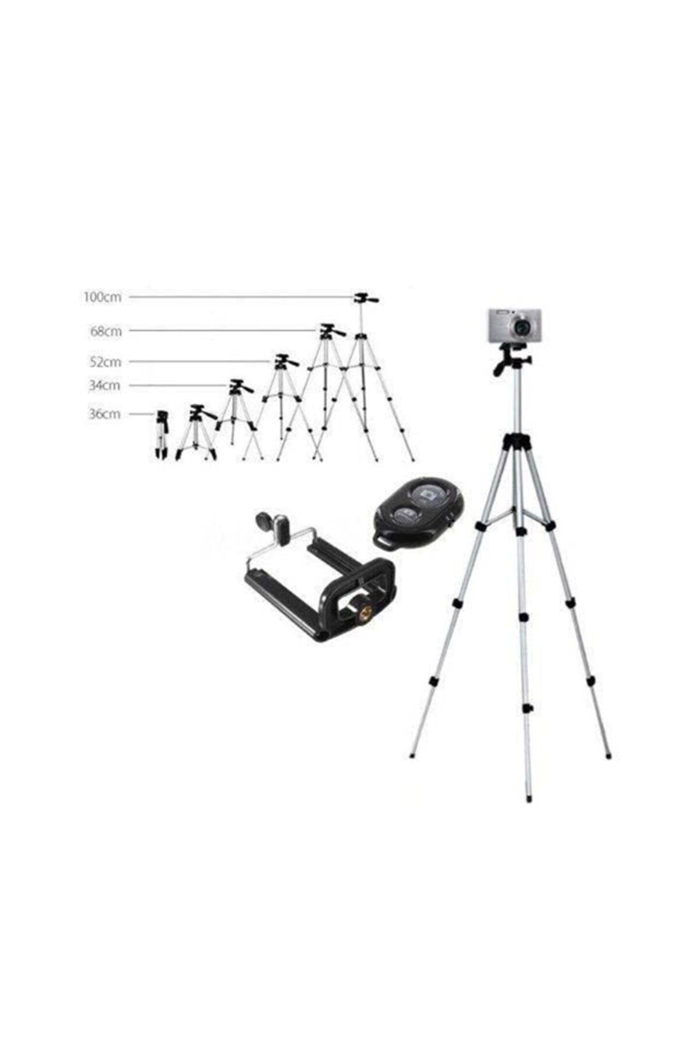 Bluetooth kumandalı tripod; 37; 102 cm ayarlanabilir; Telefon ve kamera uyumlu;